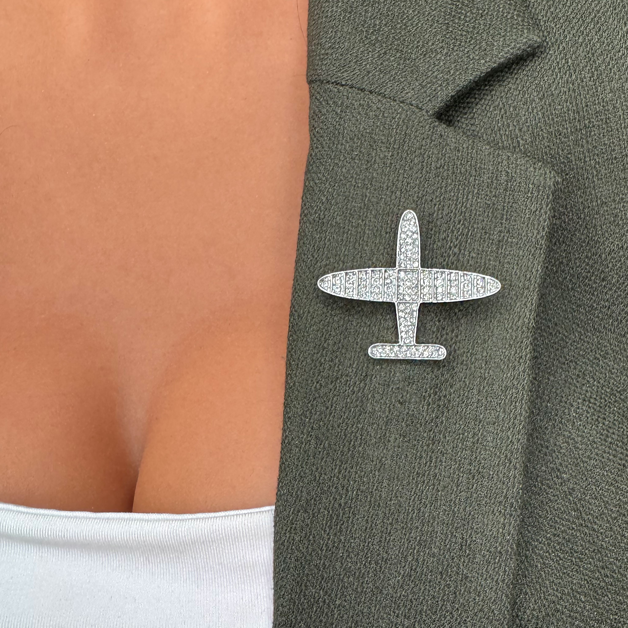 Broșă Mărțișor Gentuță – Avion Argintiu cu Pietre Strălucitoare