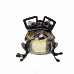 - Design: Această broșă impresionează prin tonurile sale neutre și formele delicate. Culoarea gri adaugă un plus de eleganță și rafinament întregii bijuterii, iar detaliile fine ale broscuței contribuie la un aspect subtil și sofisticat.