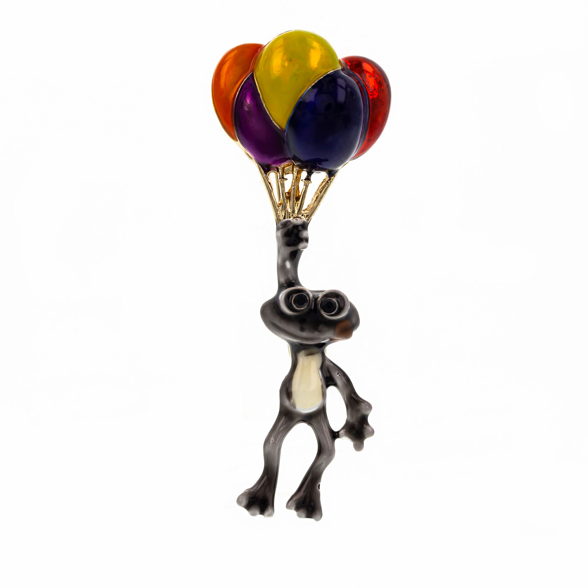 Această broșă în formă de broscuță gri cu baloane colorate este o declarație a fericirii și bucuriei de a explora viața într-un mod jucăuș și plin de culoare. Poate fi purtată pentru a aduce un strop de veselie în fiecare zi sau pentru a aminti purtătorului de importanța inocenței și curiozității în viață. Este o bijuterie plină de emoție și entuziasm care adaugă un farmec jucauș oricărei ținute.