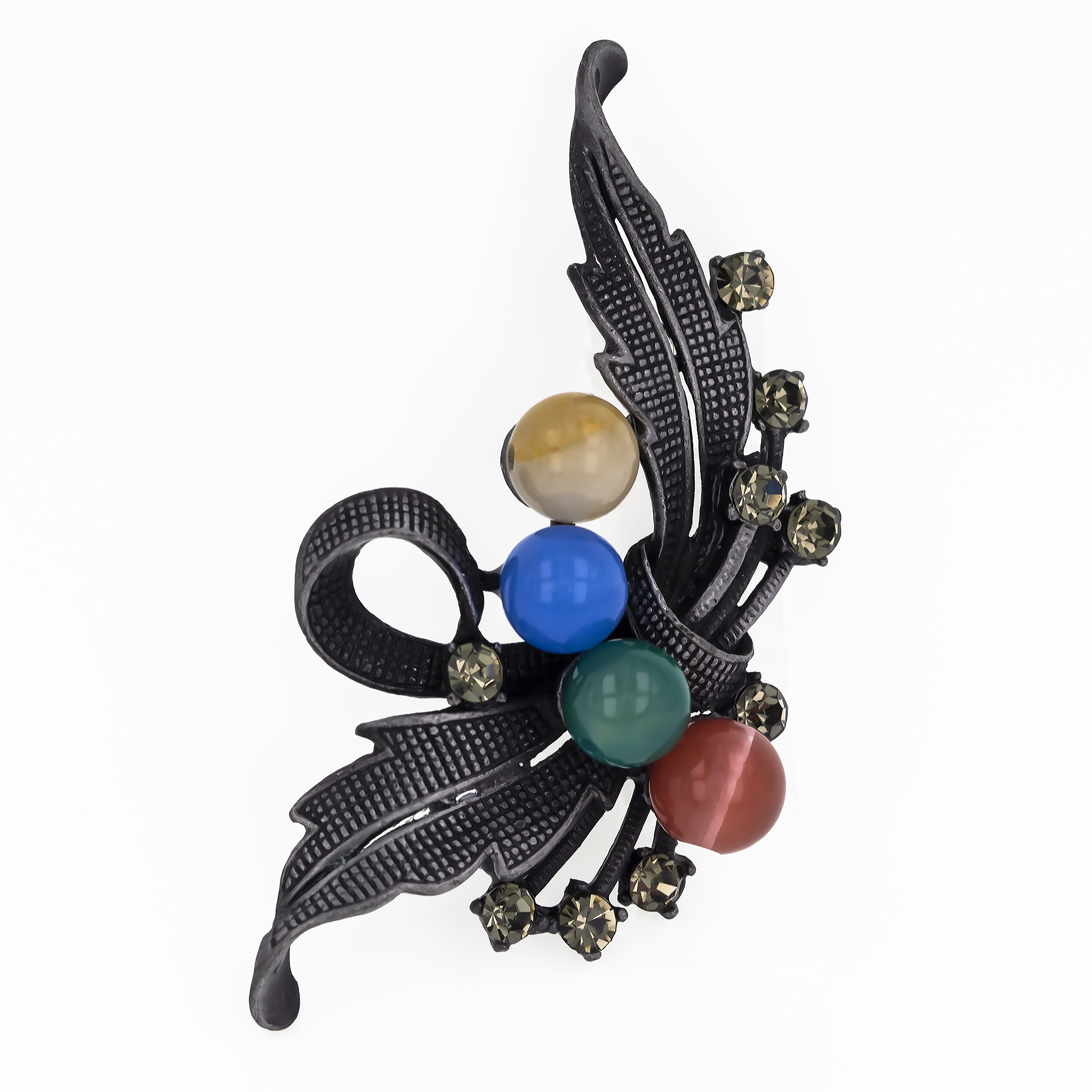 - Design: Realizată sub forma unui buchet stilizat, broșa este împodobită cu frunze fine și perluțe strălucitoare, creând un efect vizual armonios și elegant. Detaliile atent lucrate conferă bijuteriei un aer modern și feminin.