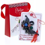 - Broșă Mărțișor Gentuță Buchet Stilizat cu Frunze și Perluțe, șnur Marțișor alb-roșu, ambalată în cutie tip gentuță, pregătită cu grijă pentru a fi oferită drept simbol al tradiției și al frumuseții primăverii.