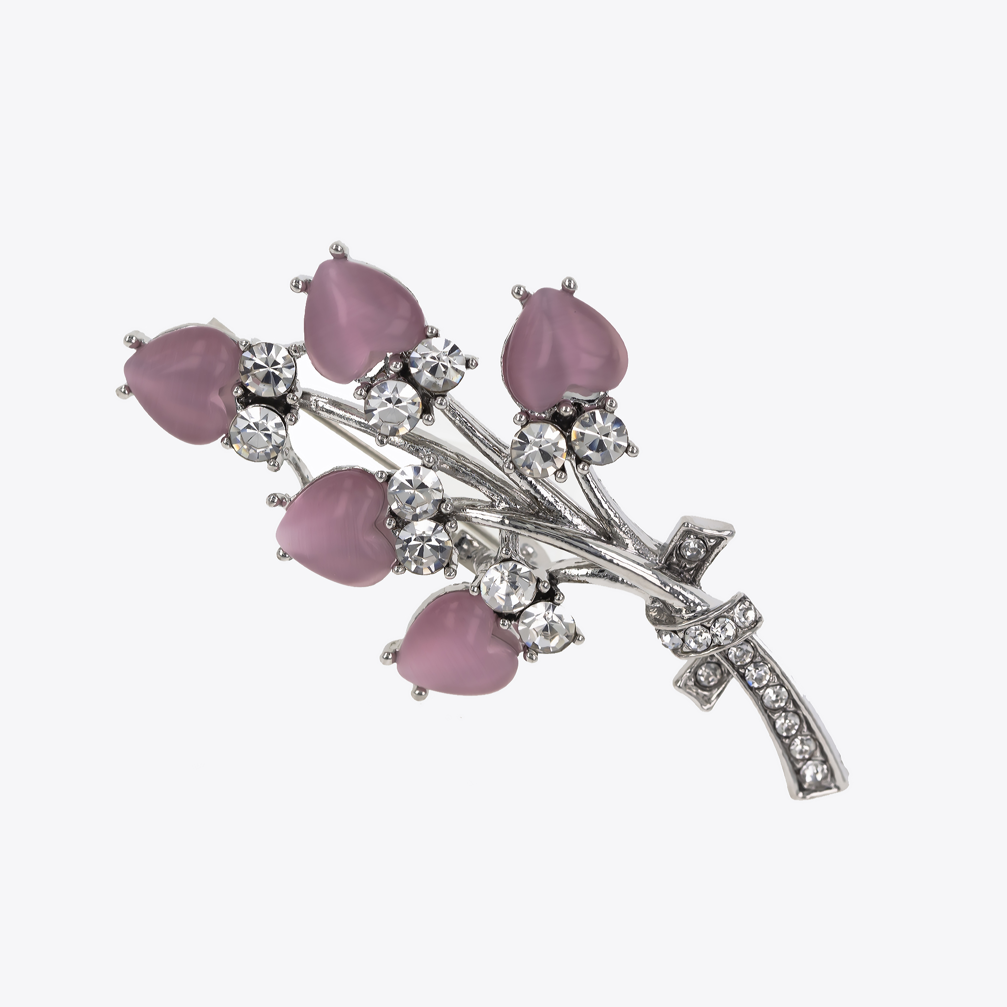 Această broșă poartă cu sine simbolul iubirii și al bucuriei de a dărui. Inimioarele adunate într-un buchețel sugerează legături speciale, afecțiune și armonie. Este o bijuterie care transmite emoții sincere și care invită la celebrarea momentelor pline de căldură și apropiere sufletească.