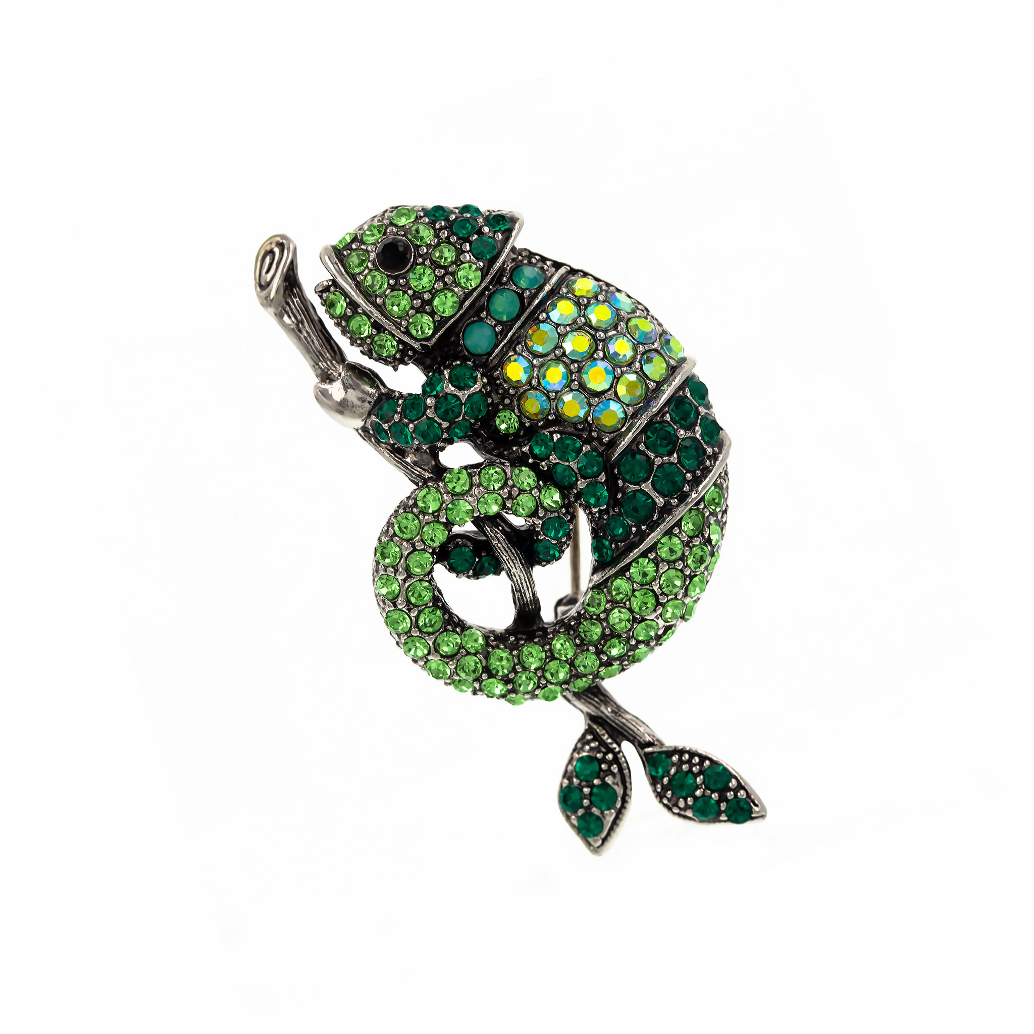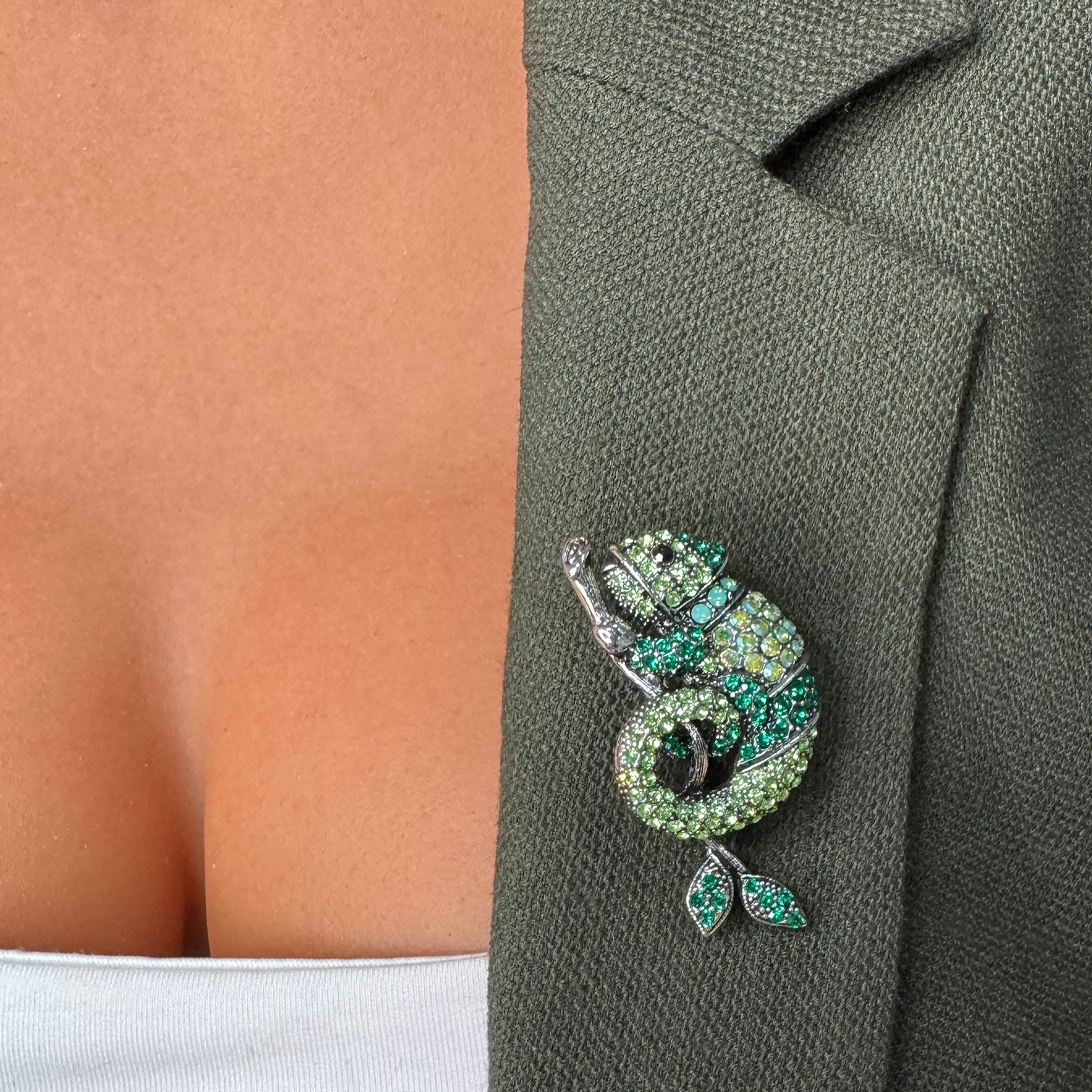 - Design: Această broșă impresionează prin formele inedite și culorile captivante. Detaliile fine ale cameleonului adaugă un plus de interes întregii bijuterii, iar culorile vibrante conferă broșei un aspect plin de viață.