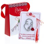 - Broșă Mărțișor Gentuță Chip Argintiu cu Inimioară, șnur Marțișor alb-roșu, ambalată în cutie tip gentuță, pregătită cu grijă pentru a fi oferită ca un cadou special, simbol al tradiției.