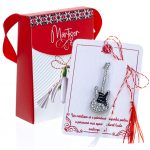- Broșă Mărțișor Gentuță Chitară Argintie, șnur Marțișor alb-roșu, ambalată în cutie tip gentuță, pregătită cu grijă pentru a fi oferită drept simbol al tradiției și al frumuseții primăverii.