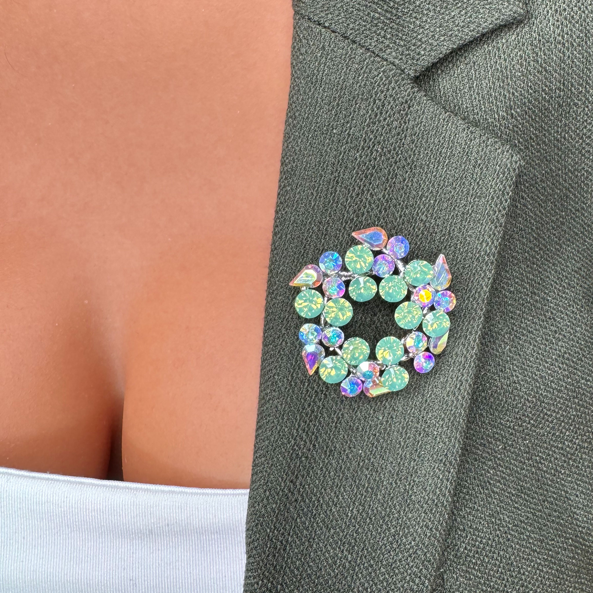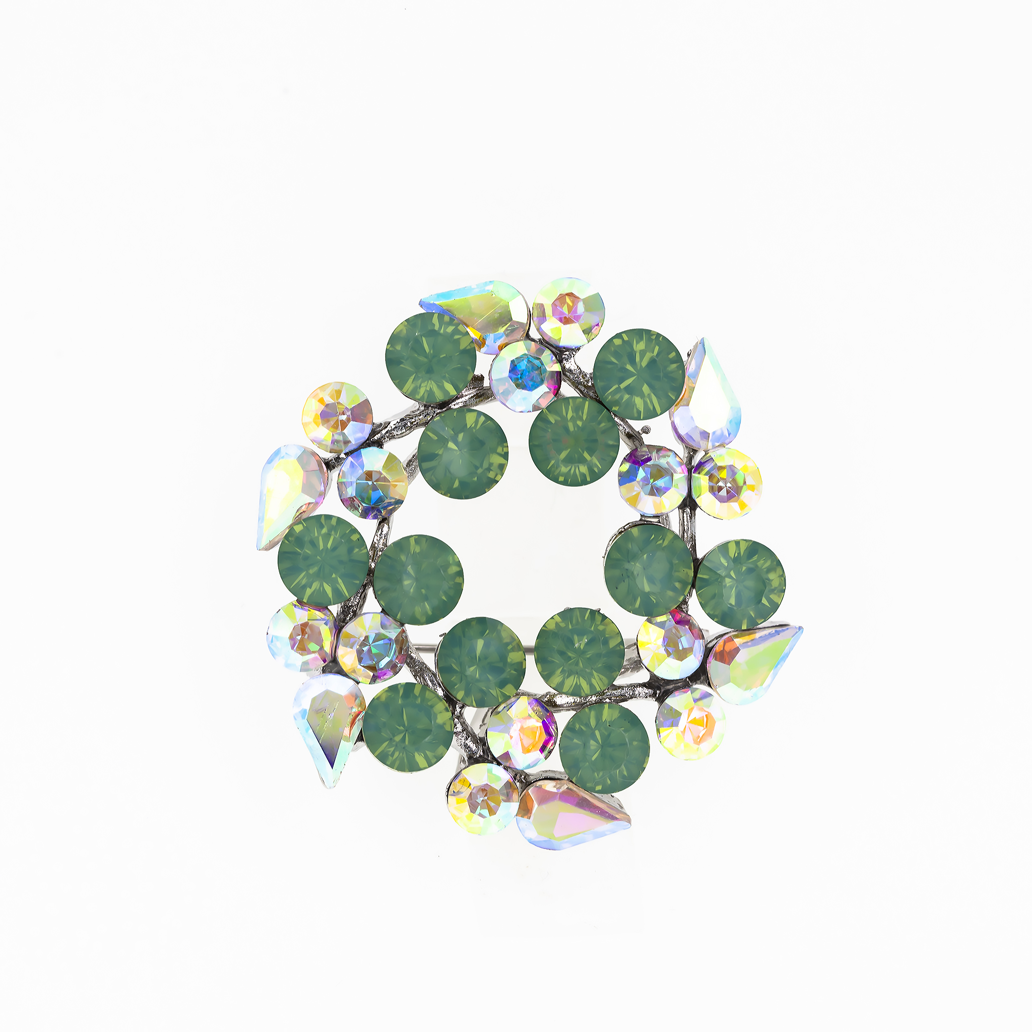 - Design: Broșa are forma unei coronițe stilizate, decorată cu pietricele verzi care strălucesc discret. Nuanța verde aduce un aer fresh și elegant, simbolizând reînnoirea și vitalitatea primăverii.