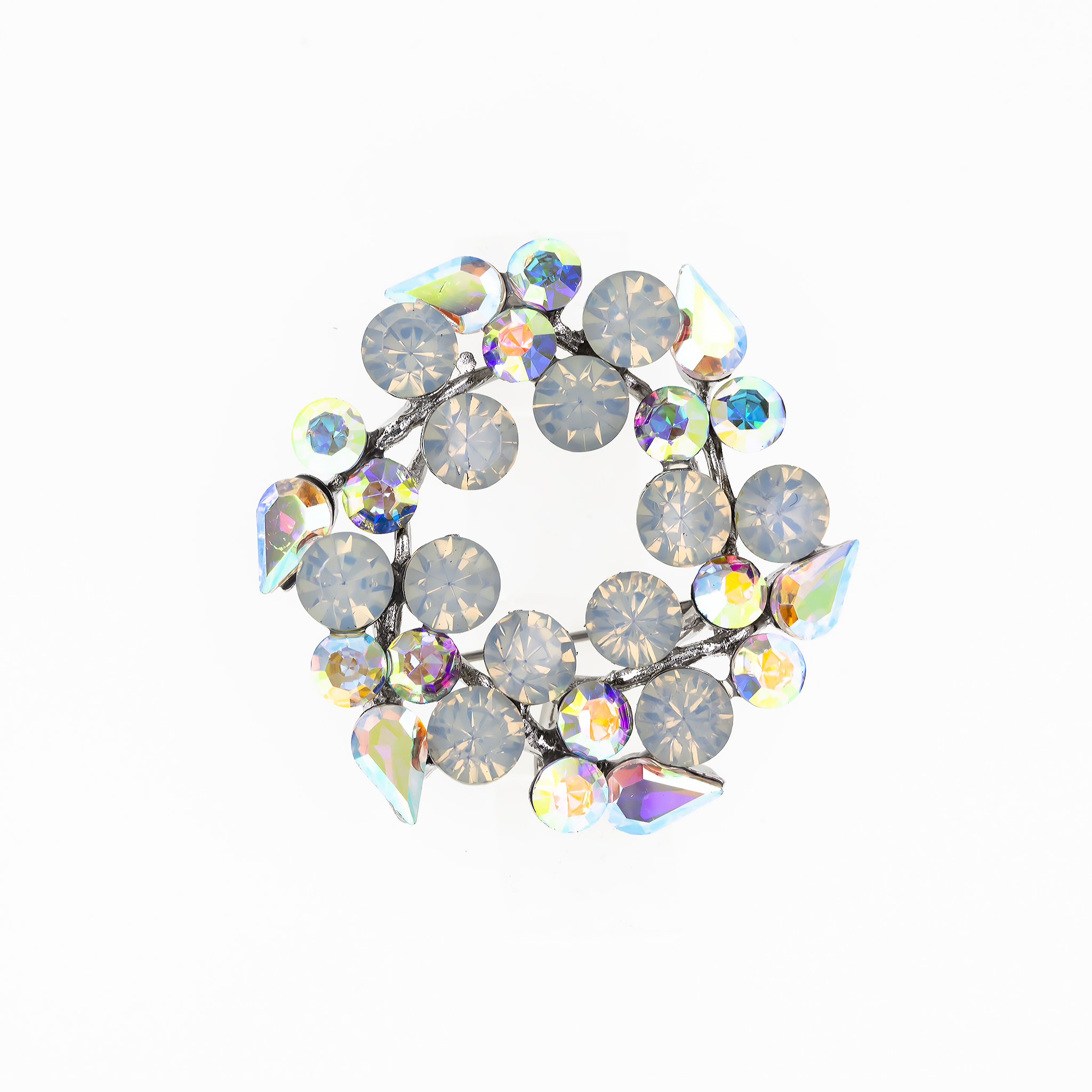 - Design: Broșa are forma unei coronițe stilizate, împodobită cu pietricele care strălucesc discret. Forma circulară sugerează continuitate și echilibru, oferind bijuteriei un aer clasic.