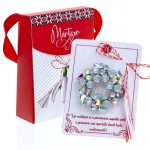- Broșă Mărțișor Gentuță Coroniță cu Pietricele, șnur Marțișor alb-roșu, ambalată în cutie tip gentuță, pregătită cu grijă pentru a fi oferită drept simbol al tradiției și al frumuseții primăverii.