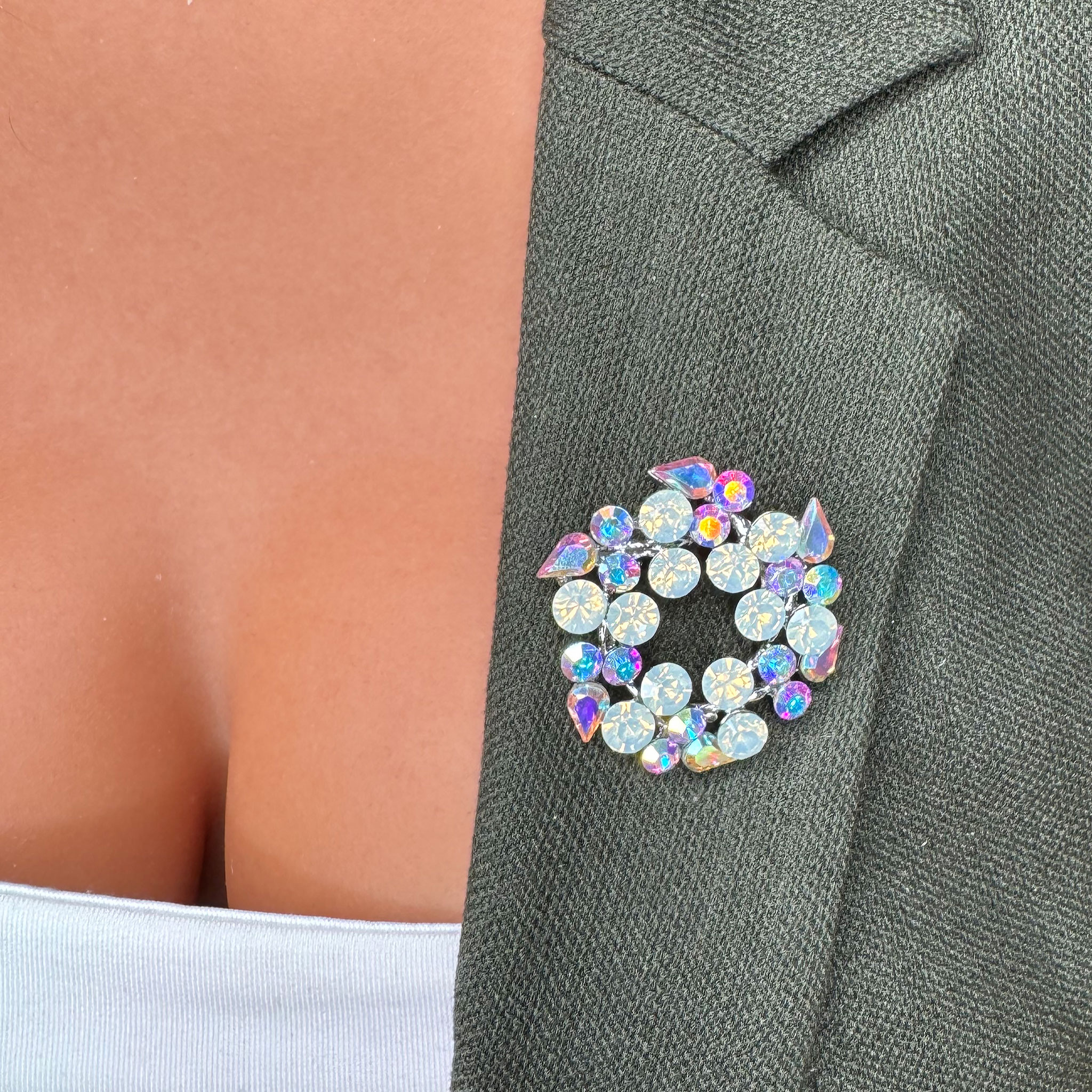 Această broșă simbolizează eleganță și feminitate printr-o coroniță delicată împodobită cu pietricele strălucitoare. Designul său inspiră optimism și energie pozitivă, aducând un strop de farmec și personalitate fiecărei ținute. Este un accesoriu care evocă frumusețea detaliilor și puterea subtilă a rafinamentului.