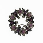 Această broșă emană delicatețe și feminitate printr-o coroniță fină împodobită cu pietricele roz. Nuanța caldă a pietrelor evocă gingășie, optimism și bucurie, transformând accesoriul într-un detaliu plin de strălucire și prospețime pentru orice ținută.