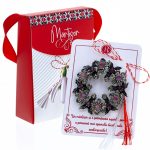 - Broșă Mărțișor Gentuță Coroniță Delicată cu Pietricele Roz, șnur Marțișor alb-roșu, ambalată în cutie tip gentuță, pregătită cu grijă pentru a fi oferită drept simbol al tradiției și al frumuseții primăverii.