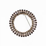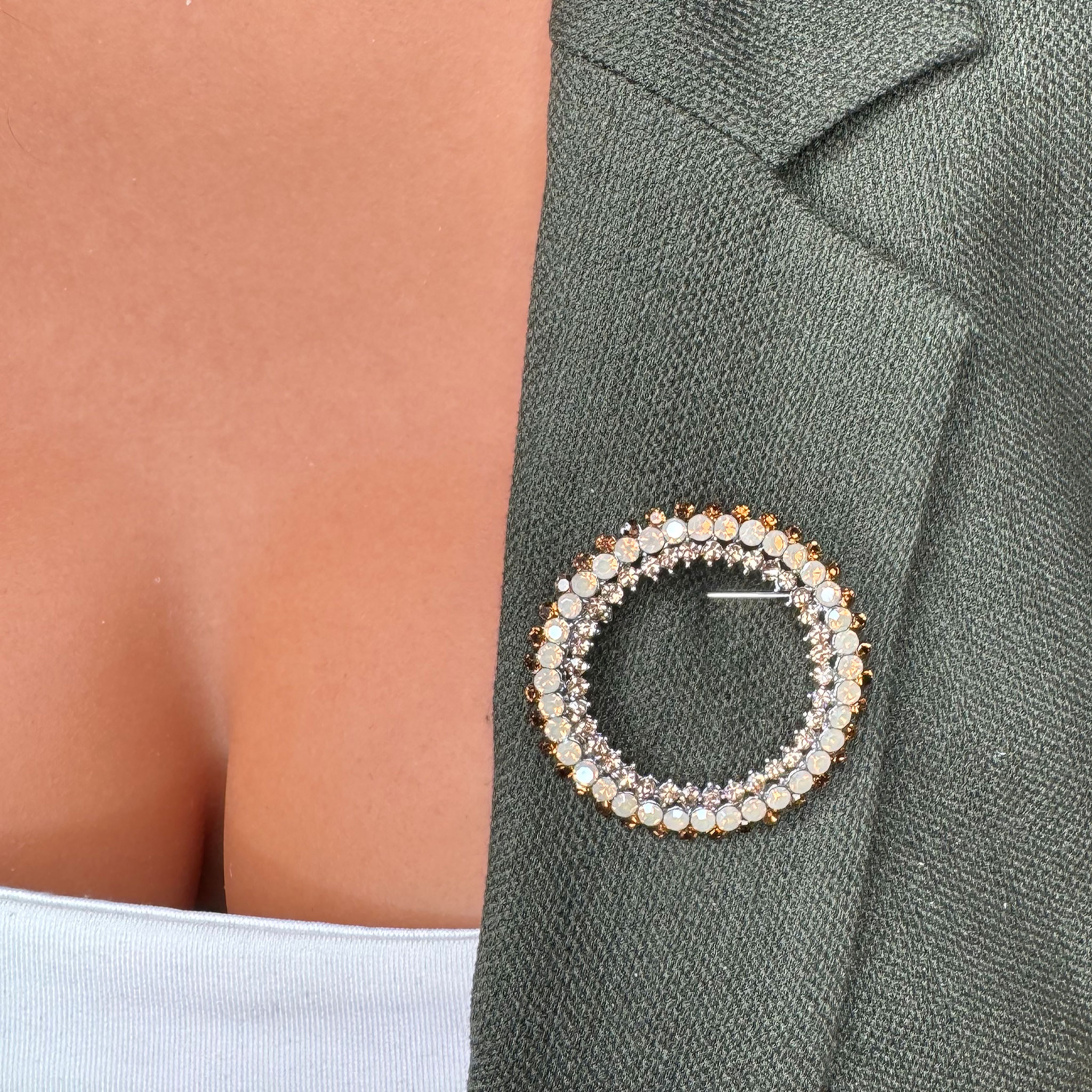 - Design: Realizată sub forma unei coronițe stilizate, broșa este împodobită cu pietricele fine ce strălucesc delicat și creează un efect vizual atrăgător. Forma circulară simbolizează armonia și unitatea, iar detaliile atent lucrate îi conferă un aer sofisticat.