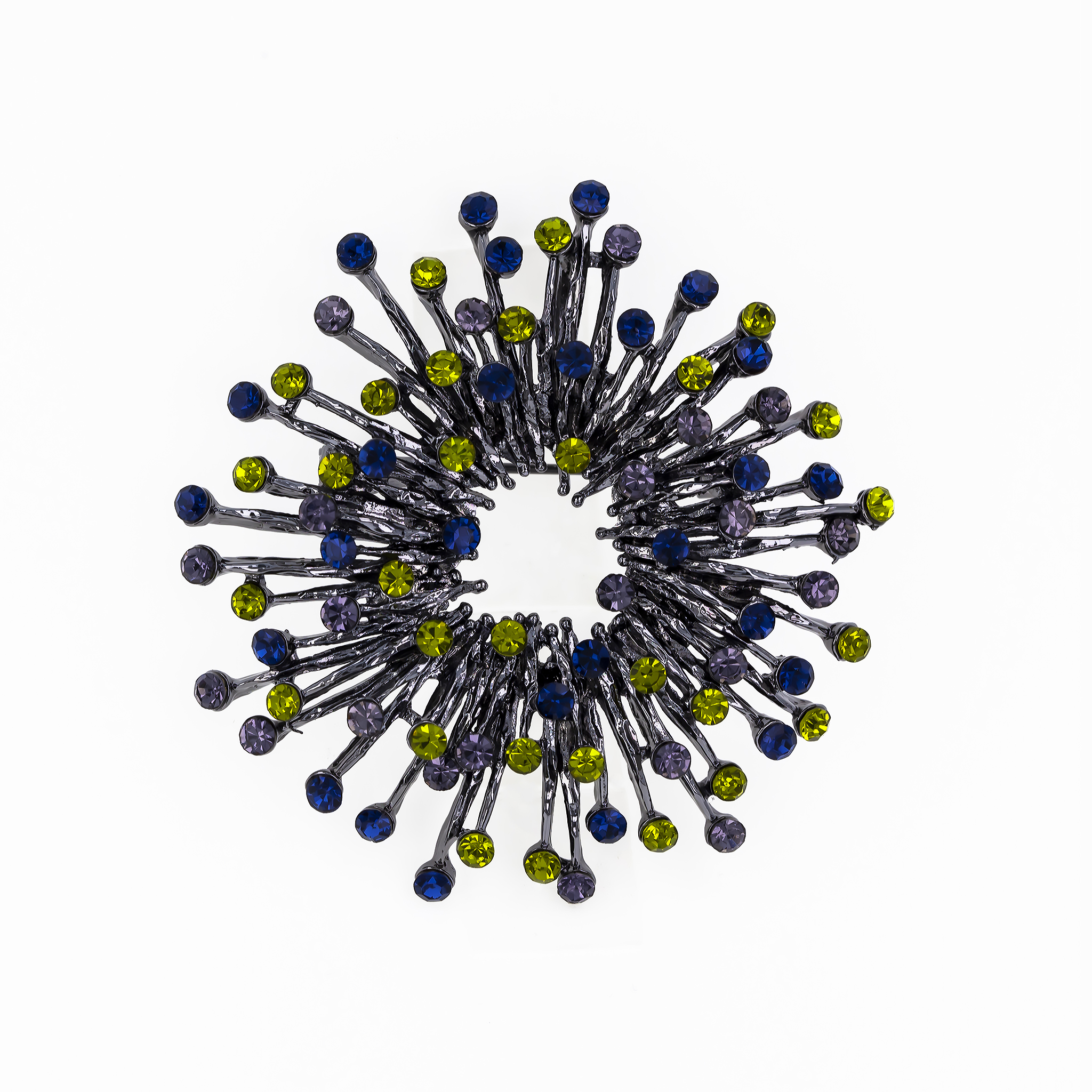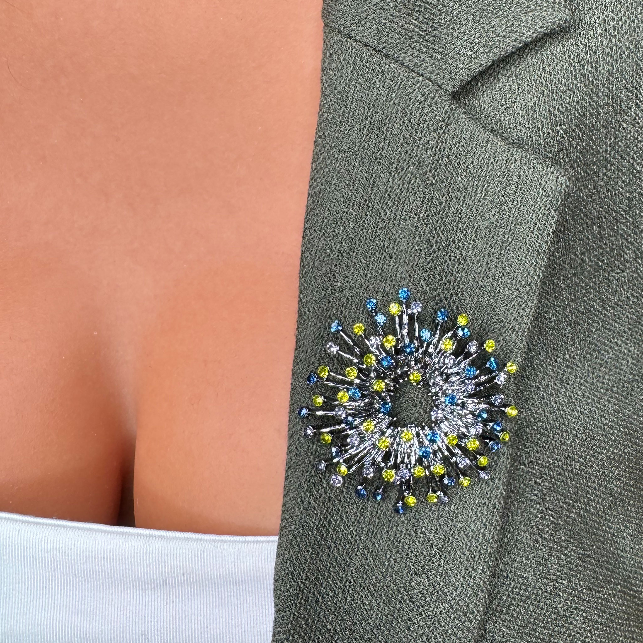 Această broșă aduce pe chipul purtătoarei bucuria și energia primăverii. Pietricelele multicolore se împletesc într-un joc al luminii și al expresivității, simbolizând diversitatea, optimismul și frumusețea vieții. Coronița stilizată devine astfel o celebrare a creativității și o invitație de a purta mereu cu tine culoare și emoție.