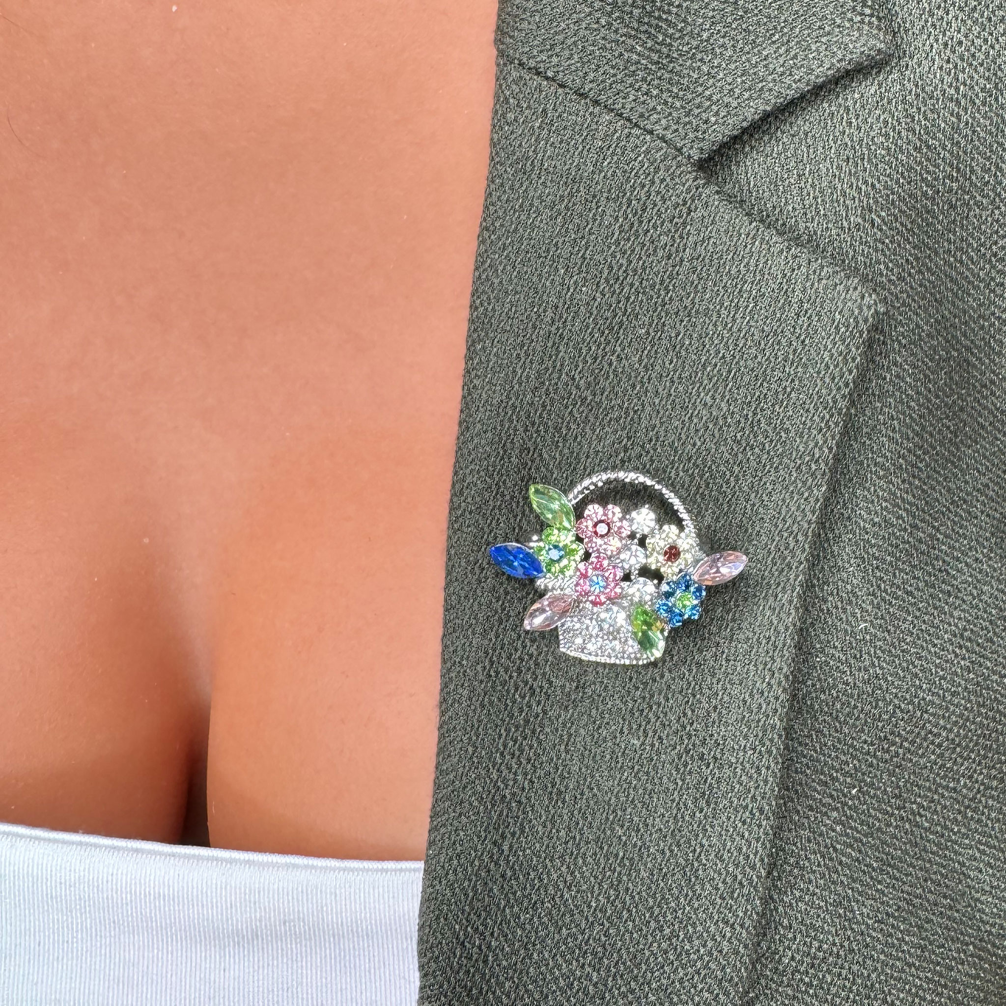Această broșă surprinde delicatețea naturii printr-un coșuleț argintiu plin cu floricele. Culoarea argintie evocă eleganță și claritate, iar florile adaugă gingășie și prospețime. Este un accesoriu care aduce optimism și farmec fiecărei ținute, inspirând feminitate și energie pozitivă.