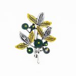 - Design: Realizată sub forma unei crenguțe stilizate, cu frunze verzi și perluțe atent plasate, broșa emană delicatețe și naturalețe. Detaliile fine și nuanțele creează un accesoriu elegant și vesel.