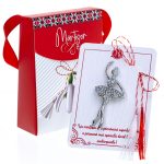 - Broșă Mărțișor Gentuță Dansatoare de Balet, șnur Marțișor alb-roșu, ambalată în cutie tip gentuță, pregătită cu grijă pentru a fi oferită drept simbol al tradiției și al frumuseții primăverii.