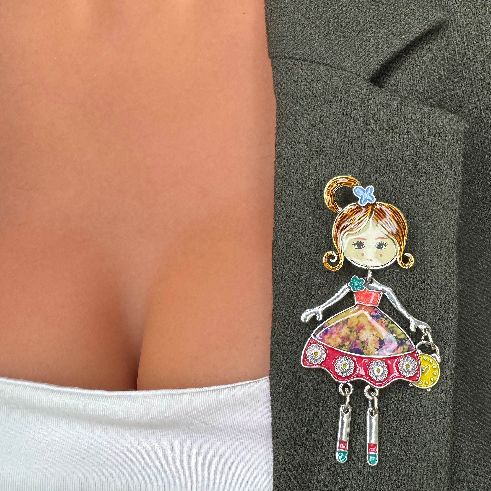Această broșă delicată în formă de fetiță, cu floricică albastră, este un accesoriu plin de farmec și personalitate. Designul său adorabil surprinde inocența și bucuria copilăriei, iar detaliile atent lucrate îi conferă un aspect unic și atrăgător.