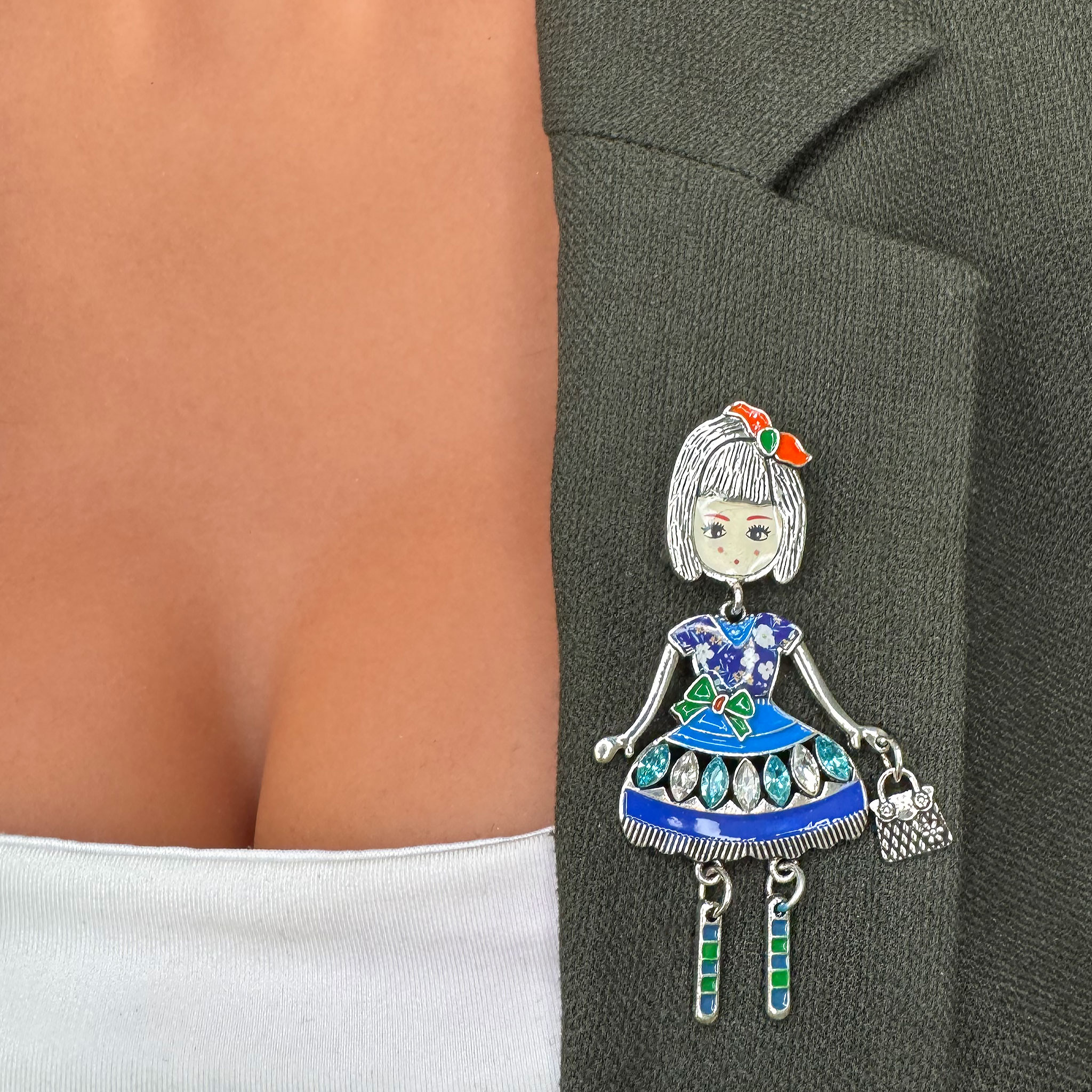 Această broșă în formă de fetiță cu fundiță portocalie este un simbol jucăuș al bucuriei și al inocenței copilăriei. Cu un design fermecător și detalii delicate, această bijuterie emană căldură și optimism. Fundița portocalie sugerează vitalitate și energie, fiind perfectă pentru a celebra frumusețea momentelor simple și autentice.