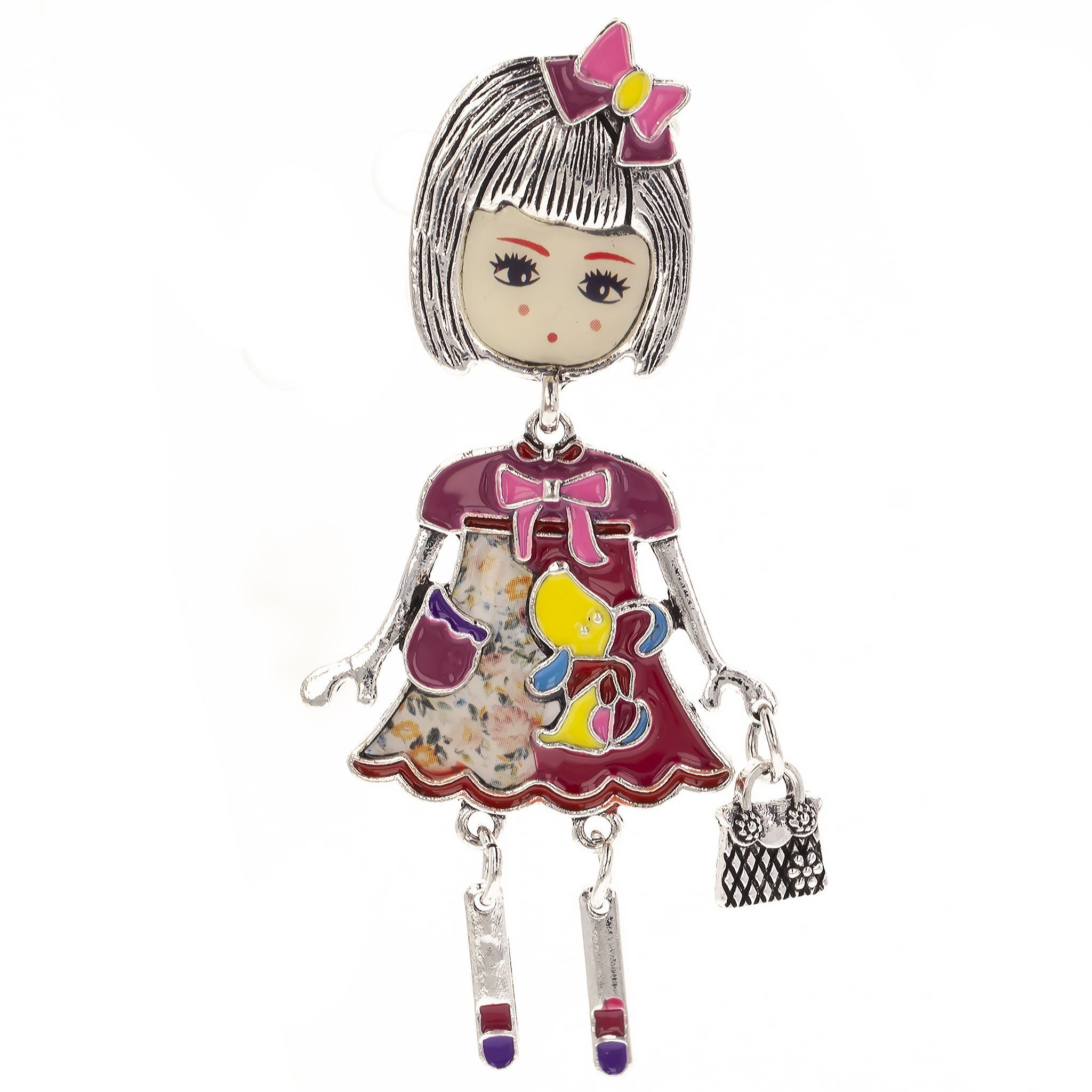 Această broșă în formă de fetiță cu fundiță roz emană un farmec deosebit și un aer jucăuș, fiind perfectă pentru a adăuga un strop de veselie oricărei ținute. Fundița roz simbolizează delicatețea, dragostea și feminitatea, în timp ce fetița cu zâmbetul său inocent adaugă o notă de gingășie.