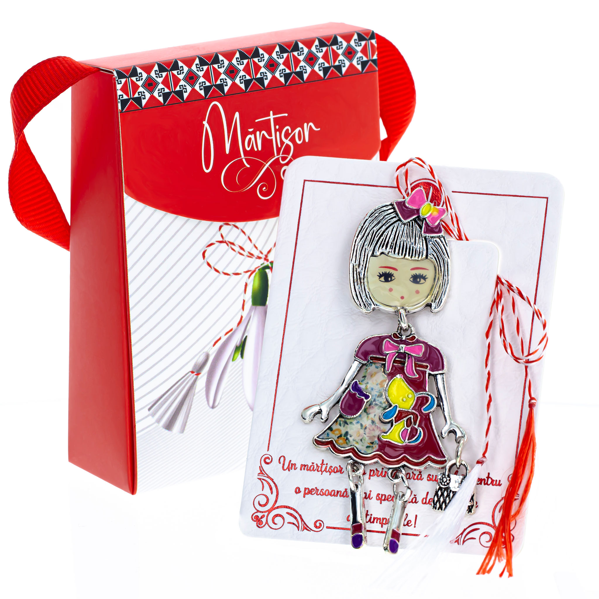 - Broșă Mărțișor Gentuță Fetiță cu Fundiță Roz, șnur Marțișor alb-roșu, ambalată în cutie tip gentuță, pregătită cu grijă pentru a fi oferită drept simbol al tradiției și al frumuseții primăverii.