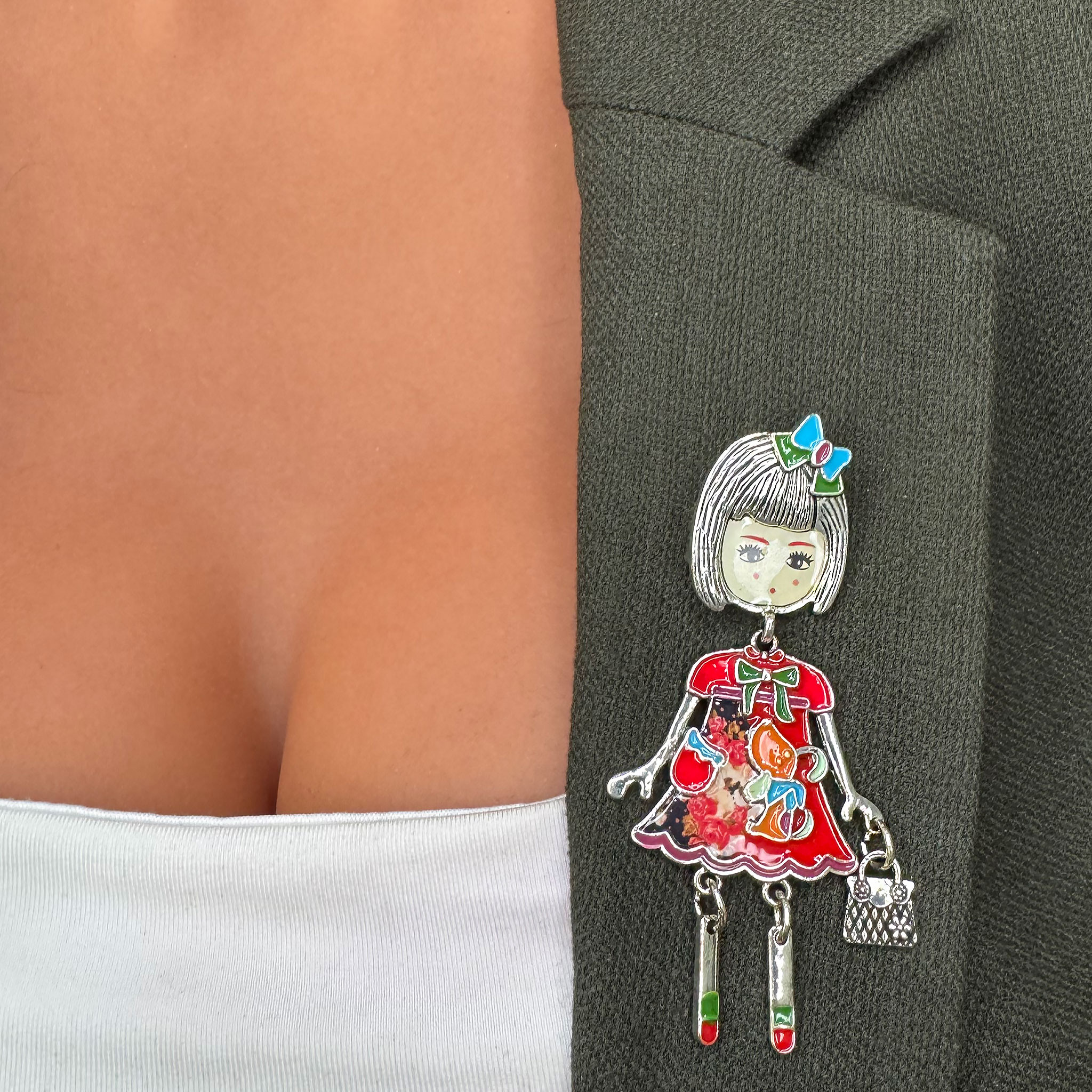 Această broșă în formă de fetiță cu fundiță verde este un simbol al prospețimii, energiei și echilibrului. Fundița verde reprezintă natura, armonia și renașterea, iar fetița cu zâmbetul său inocent adaugă un farmec jucăuș și plin de viață.