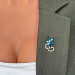 - Design: Broșa Mărțișor în formă de floare cu petale albastre emană eleganță și rafinament. Forma grațioasă a florii și nuanțele delicate de albastru adaugă un element distinctiv bijuteriei.