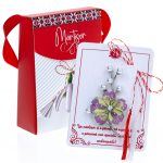 - Broșă Mărțișor Gentuță Floare Argintie cu Petale Mov, șnur Marțișor alb-roșu, ambalată în cutie tip gentuță, pregătită cu grijă pentru a fi oferită ca un cadou special, simbol al tradiției.