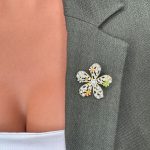 Această broșă în formă de floare, decorată cu pietre strălucitoare, emană o aură de veselie și frumusețe. Este o bijuterie ce poate aduce un plus de farmec și originalitate oricărei ținute, fiind o alegere ideală pentru cei care apreciază bijuteriile pline de detalii și strălucire. Pietricelele strălucitoare sunt dispuse pe suprafața broșei pentru a oferi strălucire și un luciu fermecător.