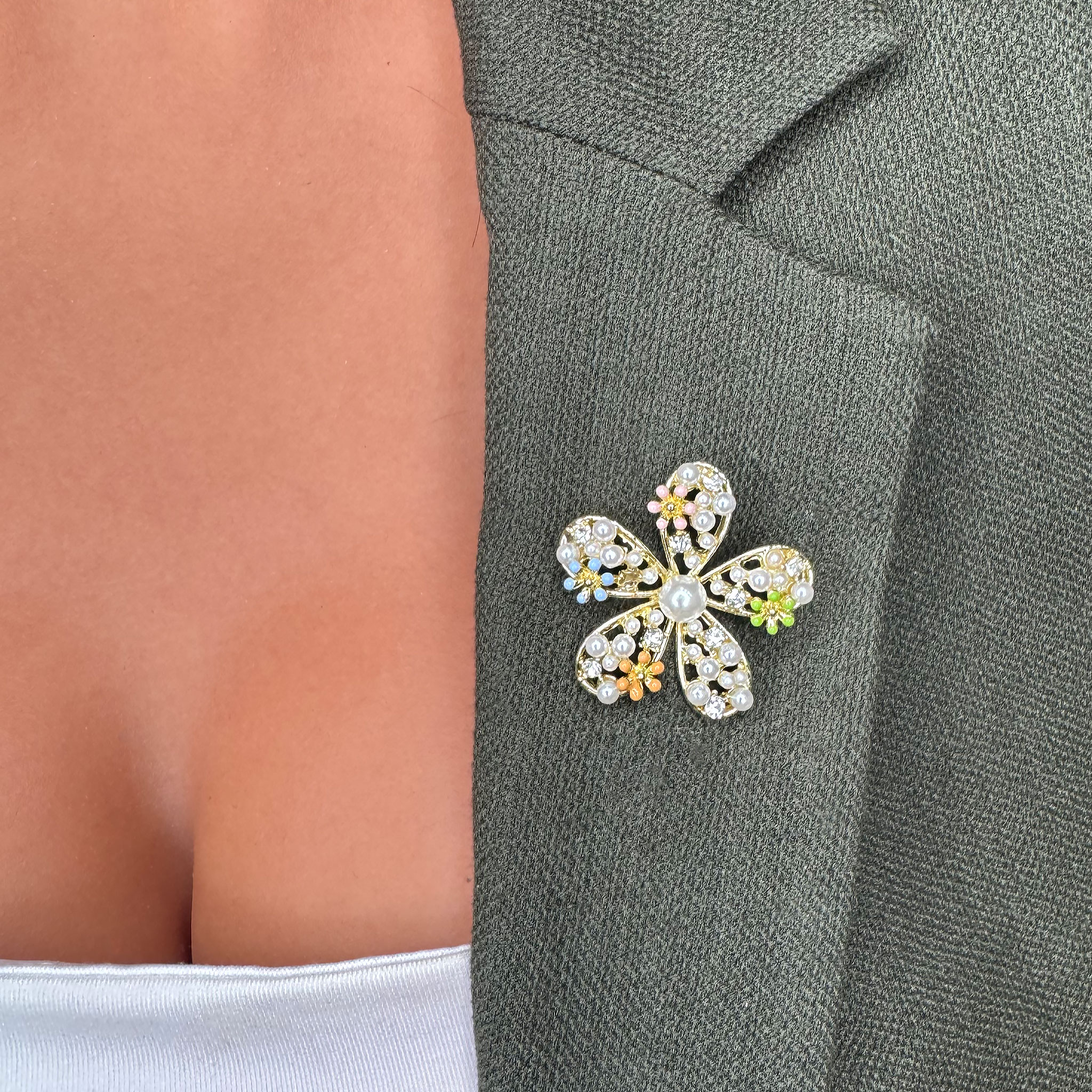 - Design: Broșa impresionează prin detalii rafinate și elegante. Forma delicată a florii, înconjurată de perluțe luminoase, adaugă un farmec aparte accesoriului. Fiecare detaliu este fin lucrat și ales cu grijă, creând o bijuterie deosebită, perfectă pentru a fi purtată cu mândrie în timpul sărbătorii Martișorului sau în orice alt moment special.