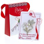- Broșă Mărțișor Gentuță Floare cu Frunzulițe, șnur Marțișor alb-roșu, ambalată în cutie tip gentuță, pregătită cu grijă pentru a fi oferită ca un cadou special, simbol al tradiției.