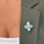 Această broșă emană o aură de rafinament și eleganță, potrivită pentru a evidenția frumusețea și feminitatea într-un mod subtil și rafinat. Cu designul său în formă de floare și strălucirea pietrelor, transmite un aer sofisticat și clasic, fiind potrivită pentru ocazii speciale sau pentru a sublinia eleganța unei ținute.