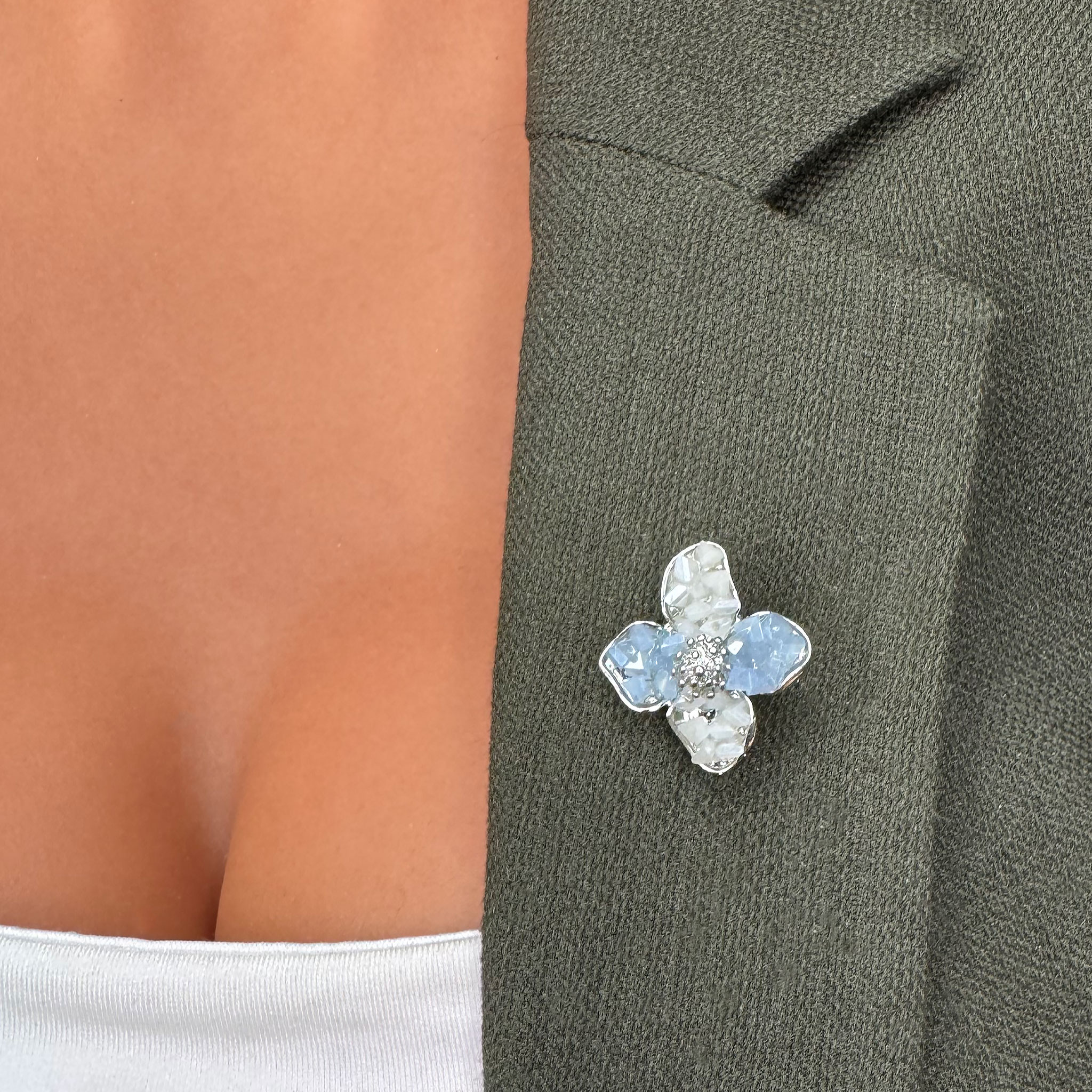 - Design: Broșa Mărțișor în formă de floare cu petale albastre emană eleganță și prospețime. Forma stilizată a florii și nuanțele delicate ale petalelor aduc un strop de rafinament, transformând această bijuterie într-un simbol al frumuseții naturale.