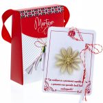 - Broșă Mărțișor Gentuță Floare cu Pietre Aurii, șnur Marțișor alb-roșu, ambalată în cutie tip gentuță, pregătită cu grijă pentru a fi oferită ca un cadou special, simbol al tradiției.