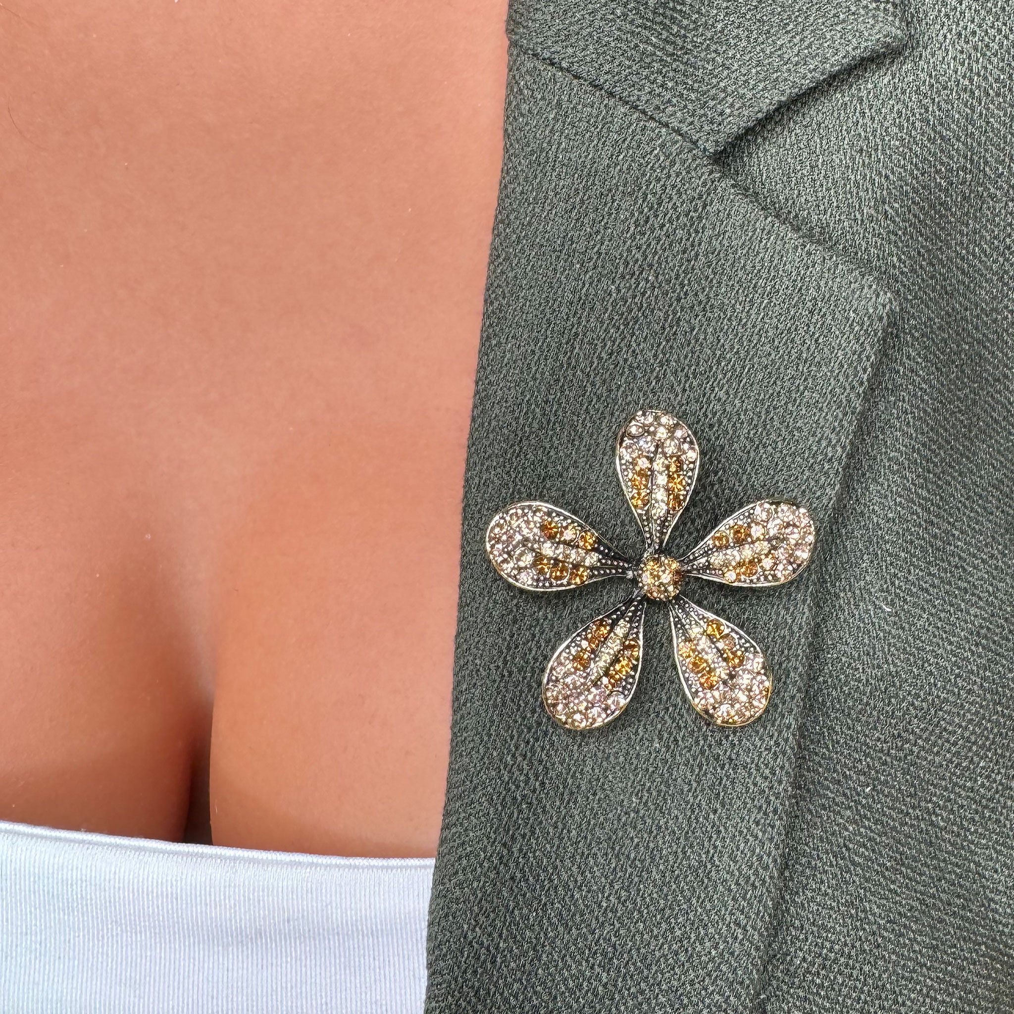Această broșă, reprezentând o floare aurie delicată, evocă prospețime și grație. Forma sa armonioasă și culoarea aurie inspiră optimism și frumusețe naturală, transformând broșa într-un accesoriu potrivit pentru orice ocazie, de la evenimente speciale până la purtarea zilnică.