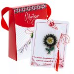 - Broșă Mărțișor Gentuță Floarea Soarelui, șnur Marțișor alb-roșu, ambalată în cutie tip gentuță, pregătită cu grijă pentru a fi oferită drept simbol al tradiției și al frumuseții primăverii.