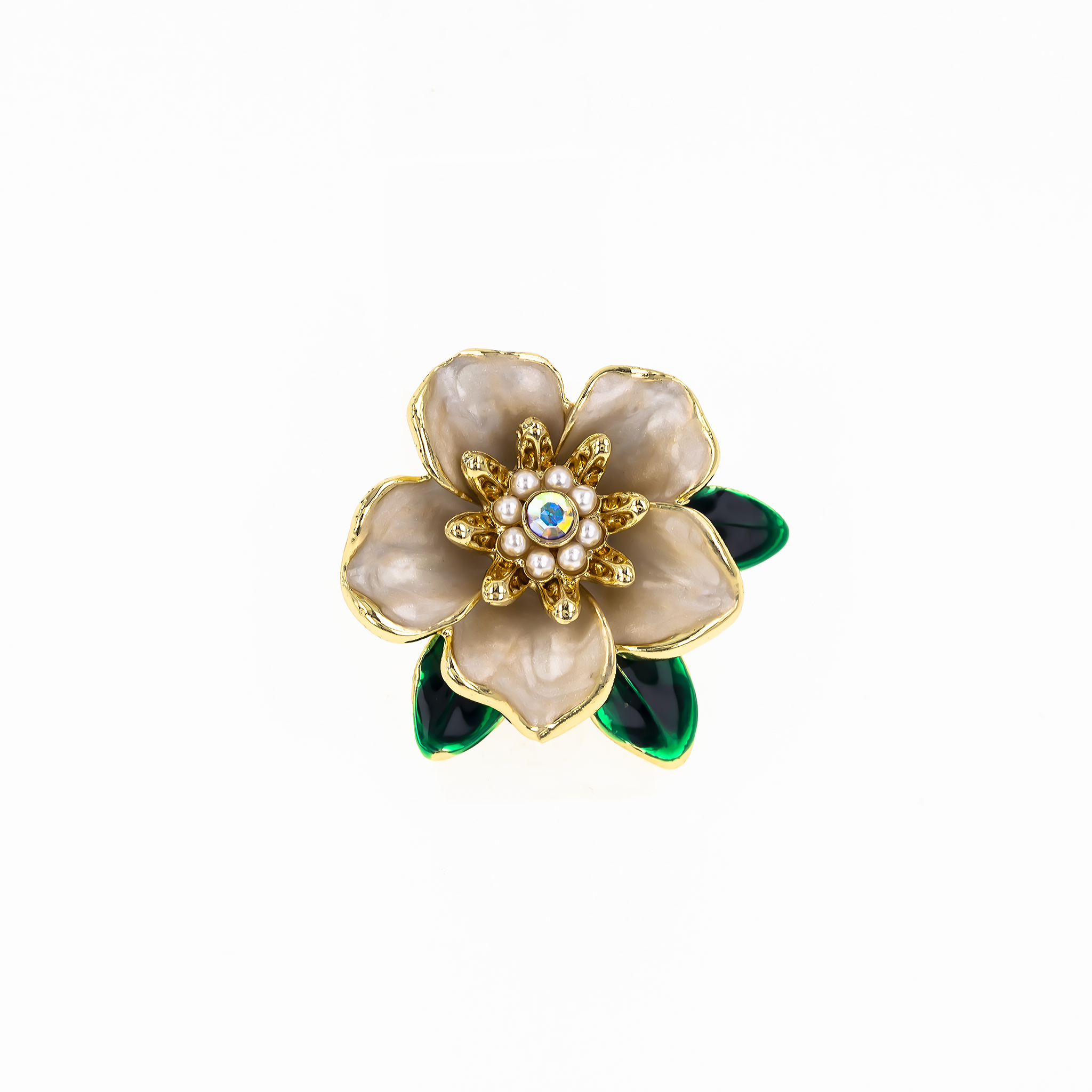 - Design: Sub forma unei floricele stilizate, broșa este împodobită cu petale aurii strălucitoare, ce conferă un aspect rafinat și elegant. Nuanța aurie oferă un plus de modernitate.