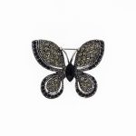 - Design: Realizată sub forma unui fluturaș stilizat, cu aripioare negre ce oferă contrast și rafinament, broșa adaugă un plus de mister și eleganță oricărei ținute. Detaliile delicate îi accentuează frumusețea atemporală.