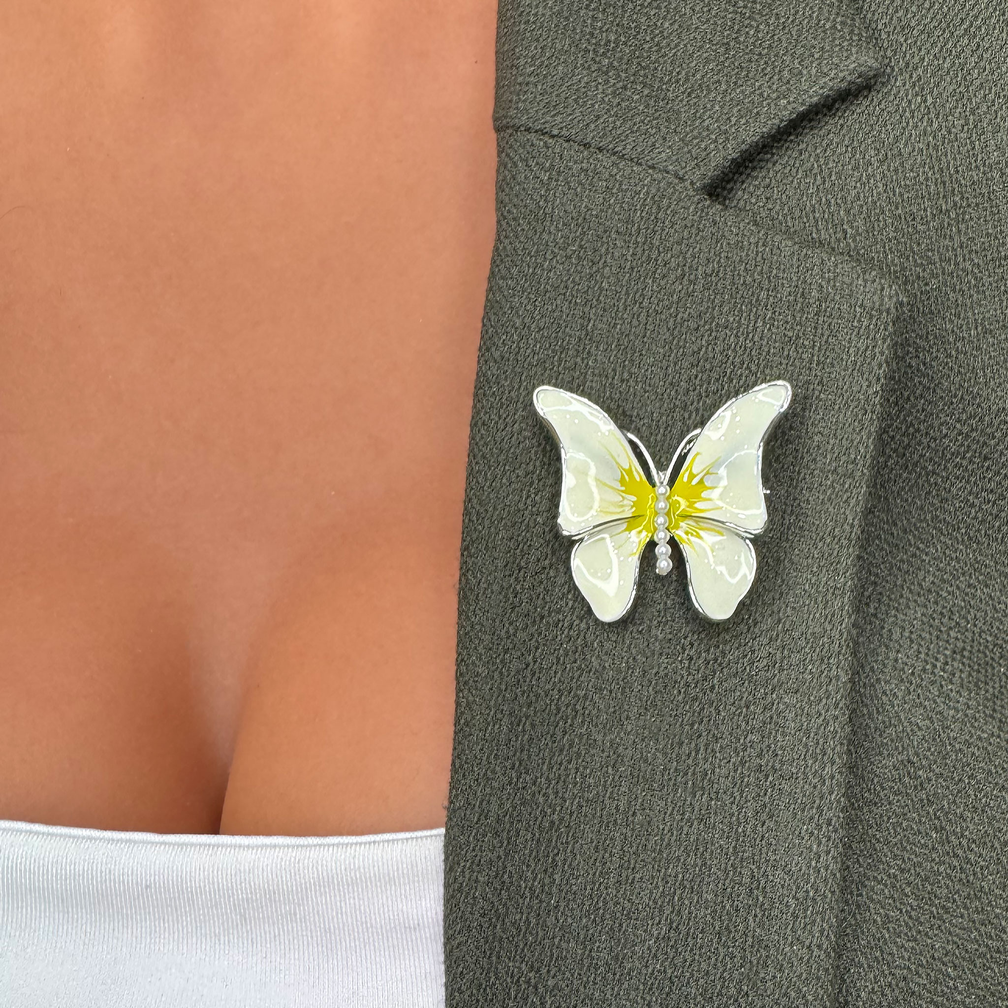 Broșă Mărțișor Gentuță – Fluture Argintiu cu Aripi Galbene