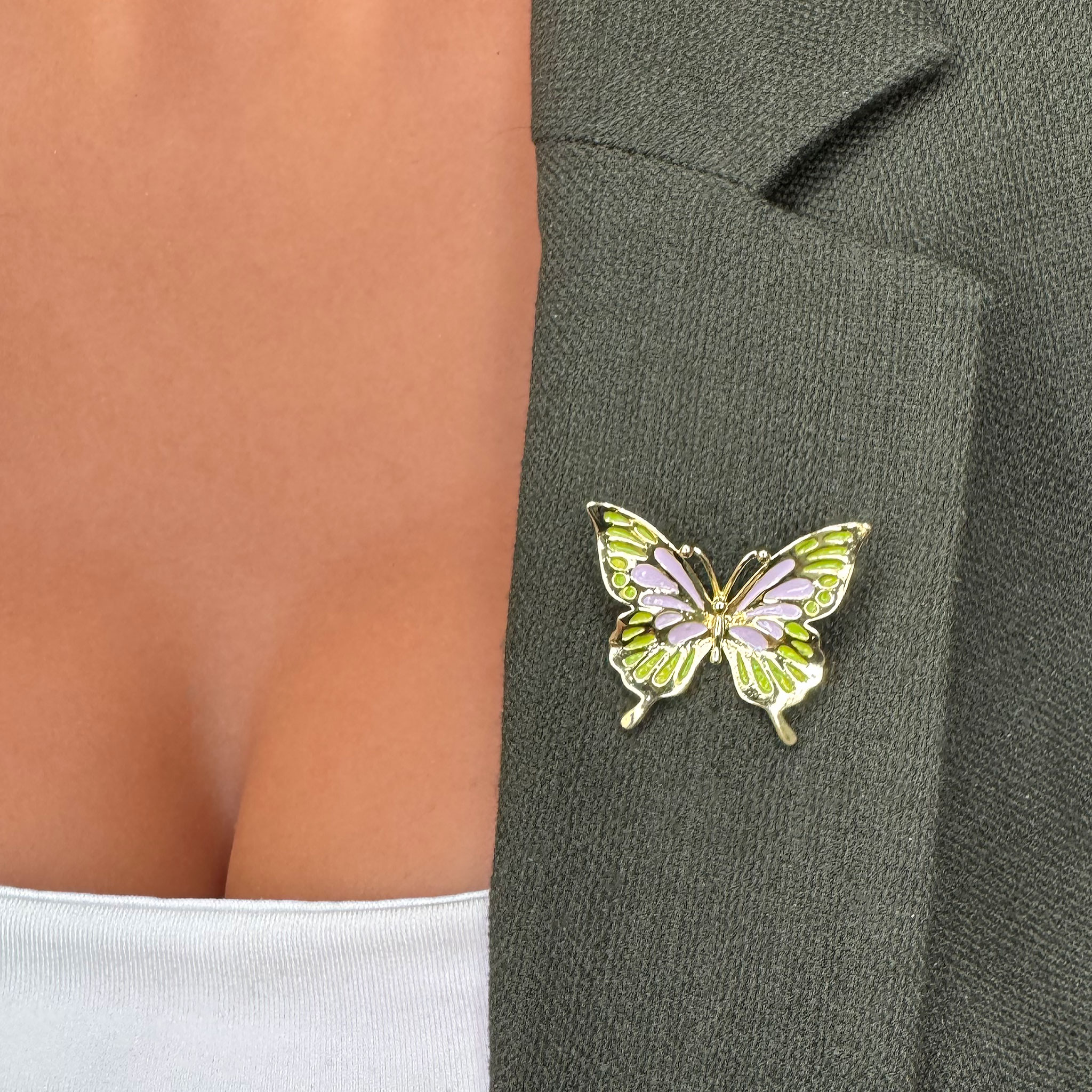 - Fluturele este un simbol universal al transformării și al schimbării. În această broșă, fluturele cu aripi verzi devine o reprezentare a evoluției, a creșterii personale și a frumuseții care rezultă din schimbare.