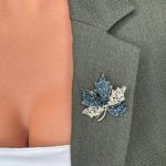 - Design: Silueta broșei imită cu precizie conturul unei frunze, aducând în prim-plan detaliile naturii. Pietrele negre, amplasate strategic, conferă broșei un aspect sofisticat și modern.