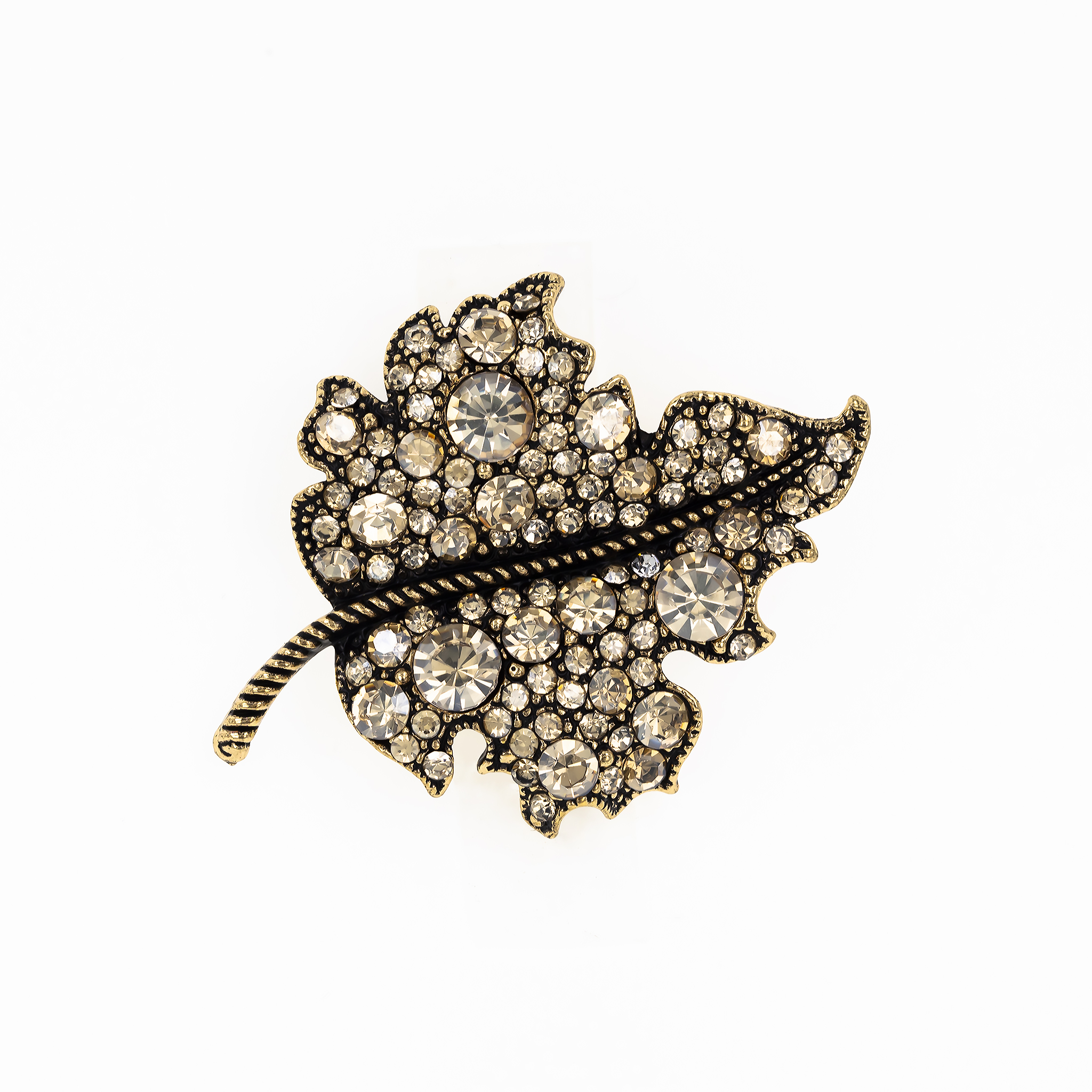 - Design: Realizată sub forma unei frunze aurii stilizate, împodobită cu pietricele fine, broșa emană rafinament și delicatețe. Contrastul dintre auriu și strălucirea pietricelelor îi oferă un efect modern și atrăgător.