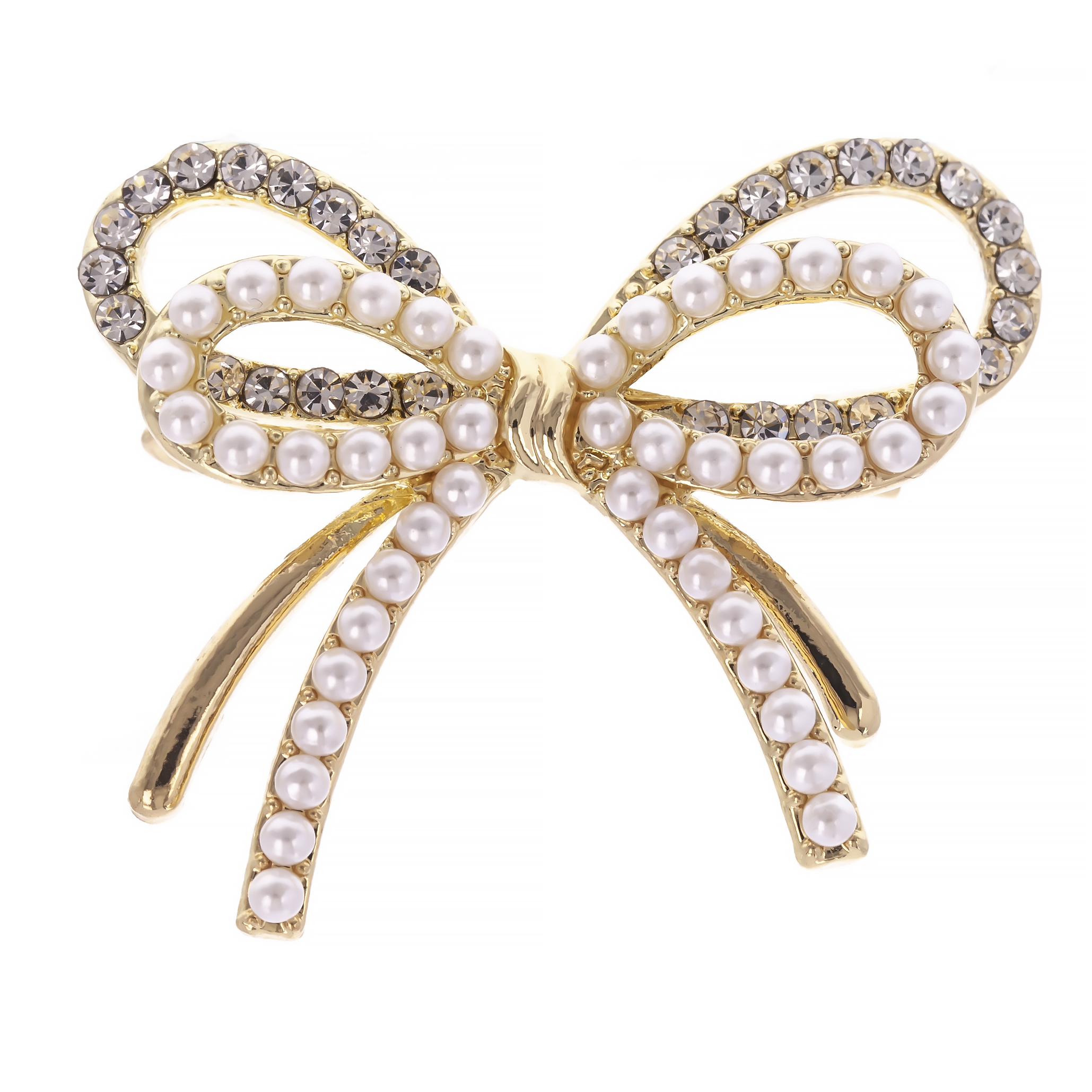 - Design: Broșa are o formă distinctivă de fundiță dublă, aducând un element de eleganță designului. Cele două fundițe completează armonios aspectul general al bijuteriei.