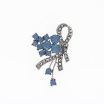 Această broșă stilizată sub formă de fundiță, decorată cu pietre albastre, surprinde prin combinația dintre delicatețea designului și intensitatea culorii. Este un simbol al frumuseții clasice și al grației, potrivită pentru a completa o ținută cu un detaliu plin de farmec.