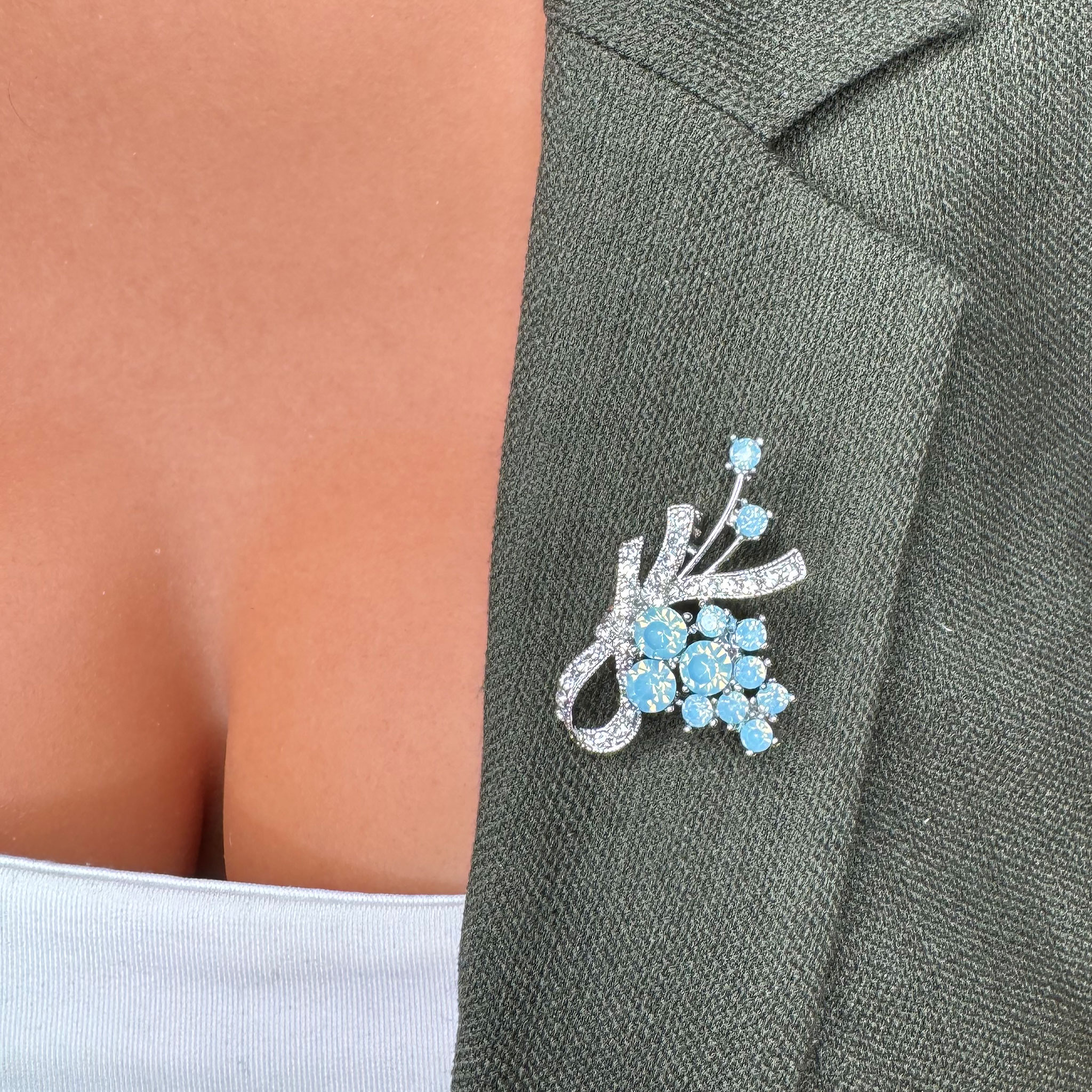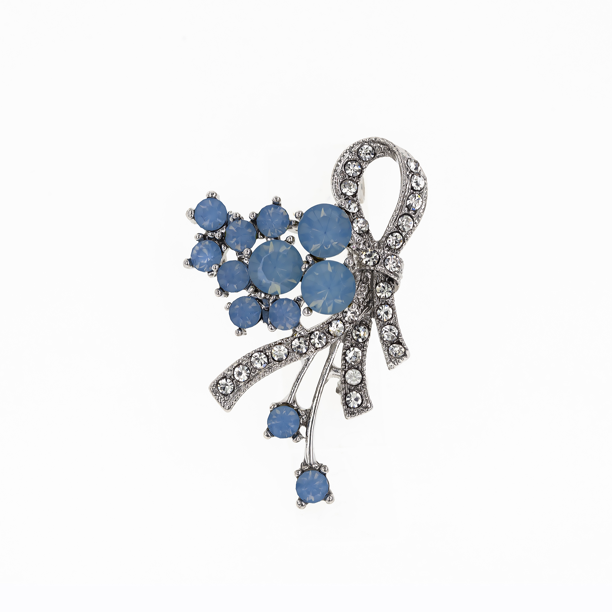 - Design: Broșa are forma unei fundițe stilizate, decorată cu pietre albastre ce strălucesc discret, conferindu-i un aer sofisticat și modern. Nuanța albastră transmite calm și eleganță.