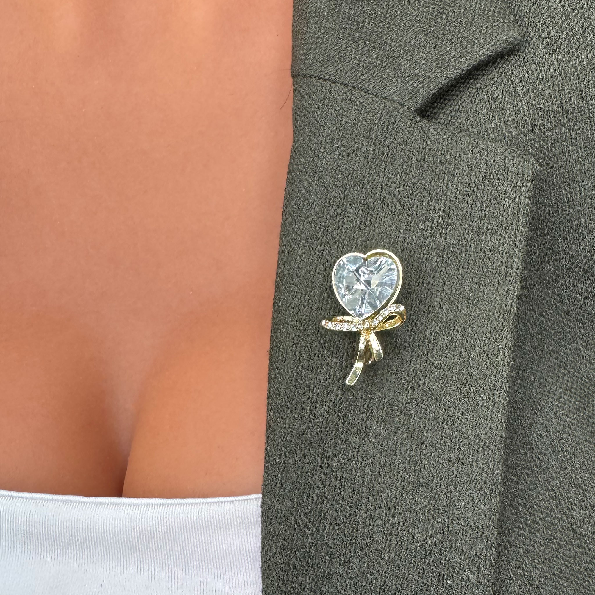 - Design: Broșa Mărțișor în formă de inimioară cu fundiță emană gingășie și romantism. Forma stilizată a inimii și prezența fundiței aduc un strop de feminitate și tandrețe, transformând această bijuterie într-un simbol al iubirii.