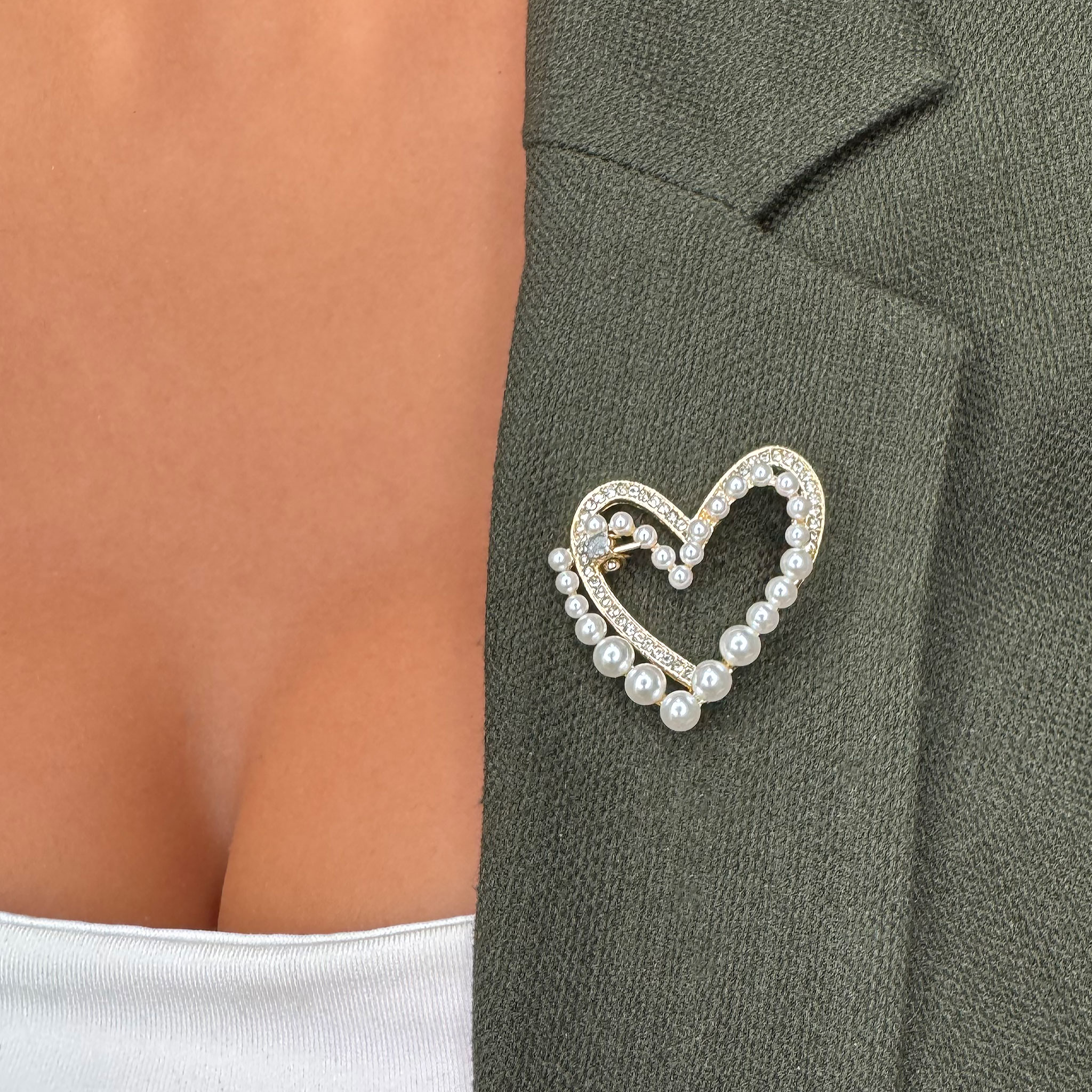 Această broșă în formă de inimioară este o bijuterie versatilă și plină de semnificație, potrivită pentru a exprima iubirea și afecțiunea sau pur și simplu pentru a adăuga un strop de strălucire unei ținute. Emană un aer de romantism și rafinament, fiind o alegere minunată pentru a completa un look romantic sau pentru a adăuga un strop de strălucire și farmec unei apariții.