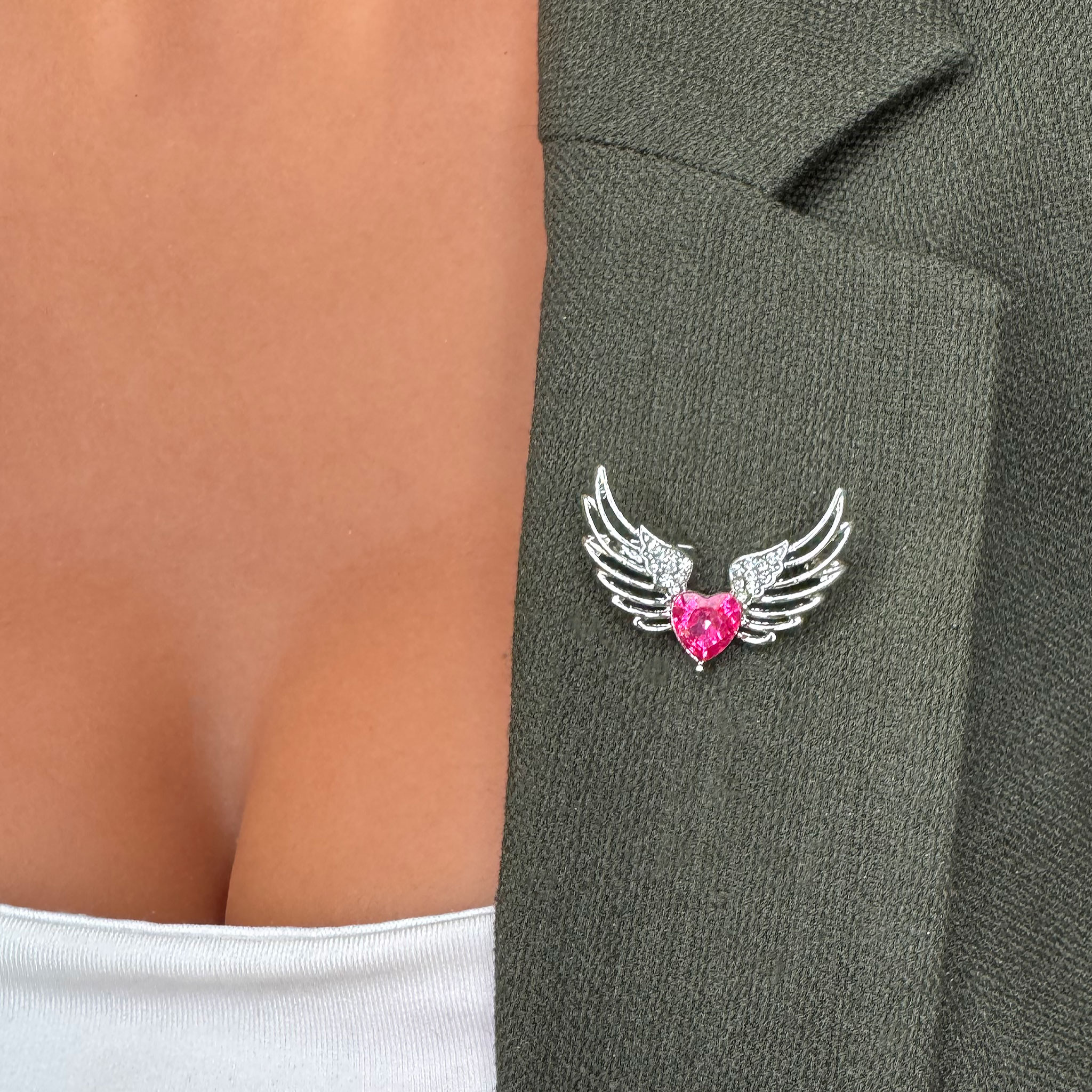 - Inimioara este simbolul iubirii și al pasiunii, în timp ce aripile reprezintă dorința de libertate și expansiune. Broșa devine astfel o mică poveste despre iubirea care eliberează și despre explorarea neîngrădită a sentimentelor.