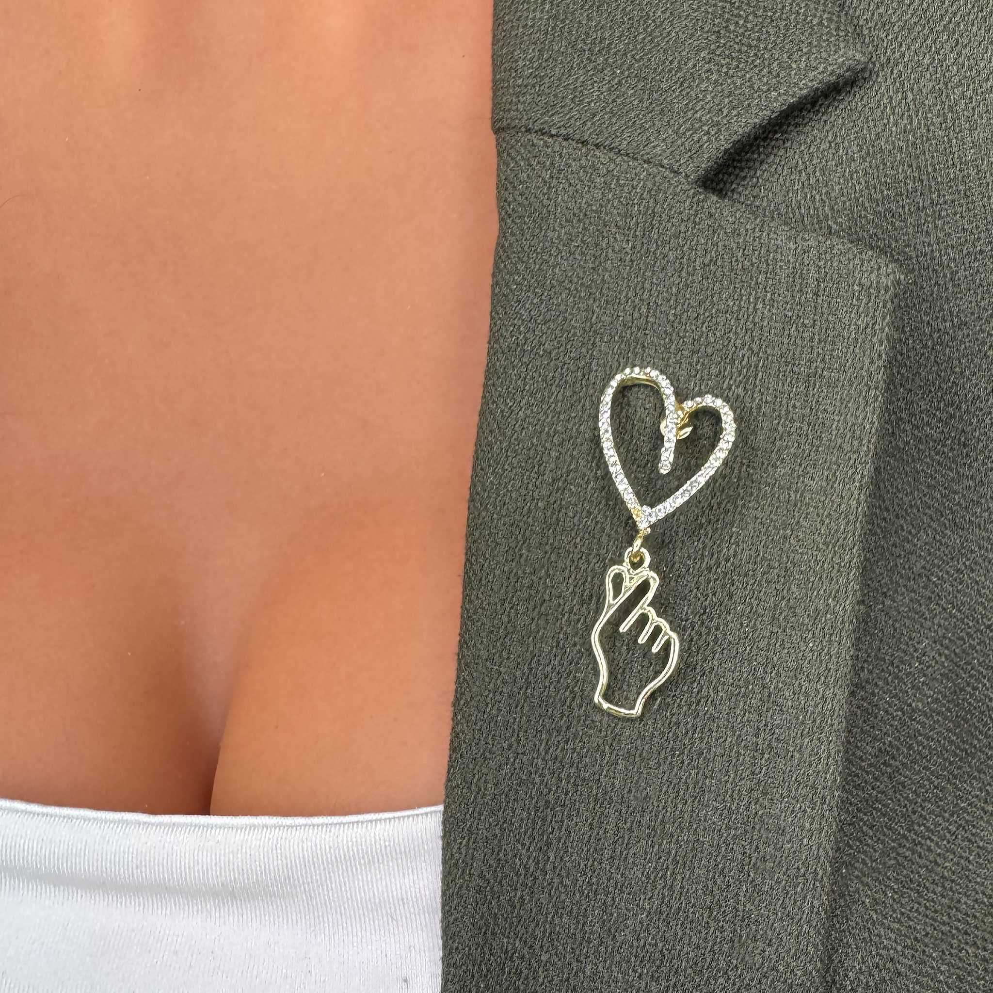 - Design: Broșa Mărțișor în formă de mână cu inimioară emană gingășie și afecțiune. Forma stilizată a mâinii și prezența inimioarei adaugă un aer de căldură și conexiune, transformând această bijuterie într-un simbol al dragostei și al comunicării afectuoase.
