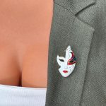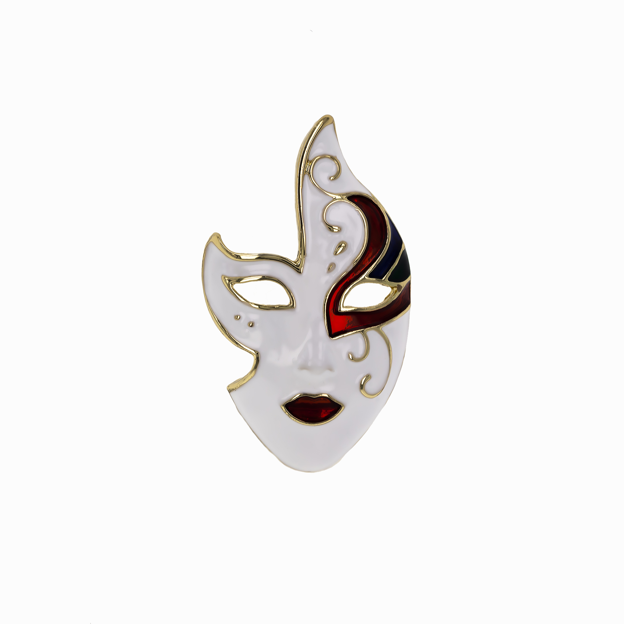 - Design: Sub forma unei măști venețiene stilizate, broșa are un finisaj auriu strălucitor, îmbogățit cu detalii fine ce aduc un aer de mister și eleganță.