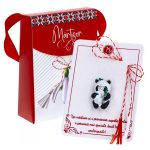 - Broșă Mărțișor Gentuță Micul Panda, șnur Marțișor alb-roșu, ambalată în cutie tip gentuță, pregătită cu grijă pentru a fi oferită drept simbol al tradiției și al frumuseții primăverii.